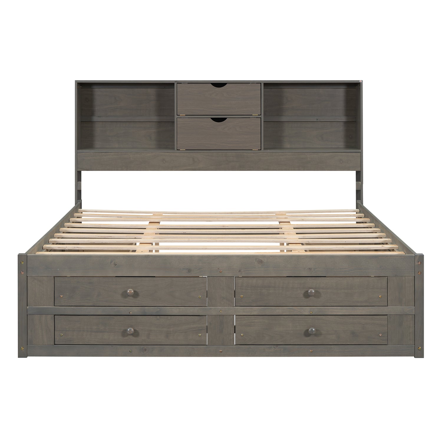 King Size Platform Bed with Storage Headboard and 8 Drawers, Gray is available