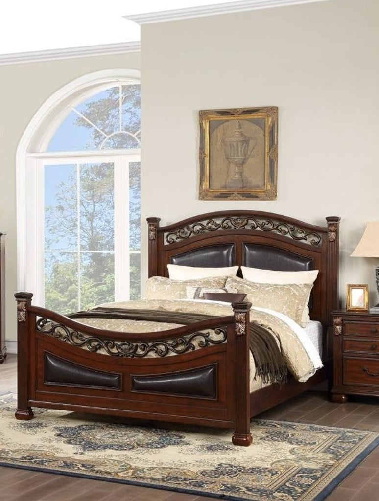 Traditional Style 1pc Queen Size Bed Padded Headboard And Footboard Dark Cherry Finish is available