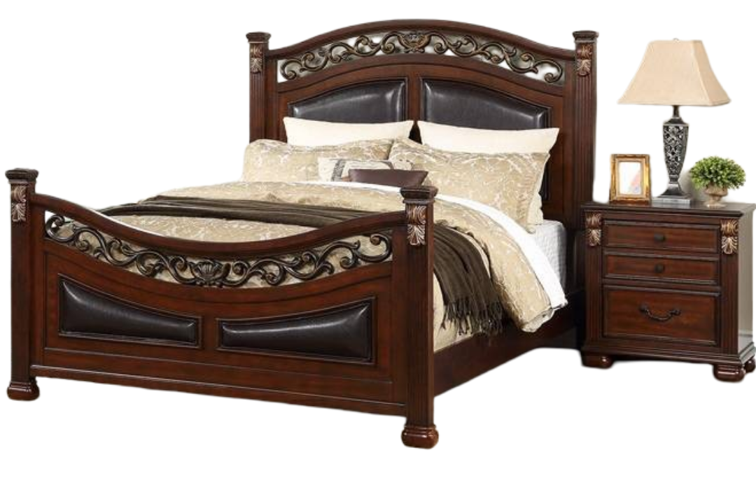 Traditional Style 1pc Queen Size Bed Padded Headboard And Footboard Dark Cherry Finish
