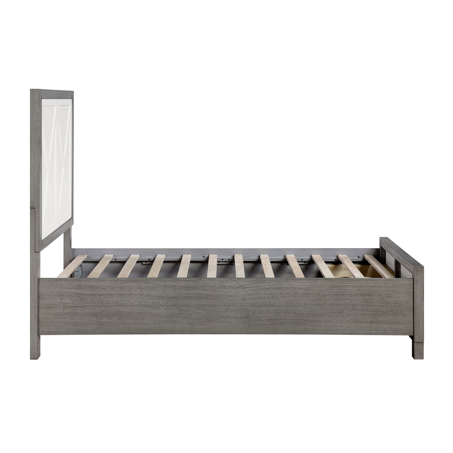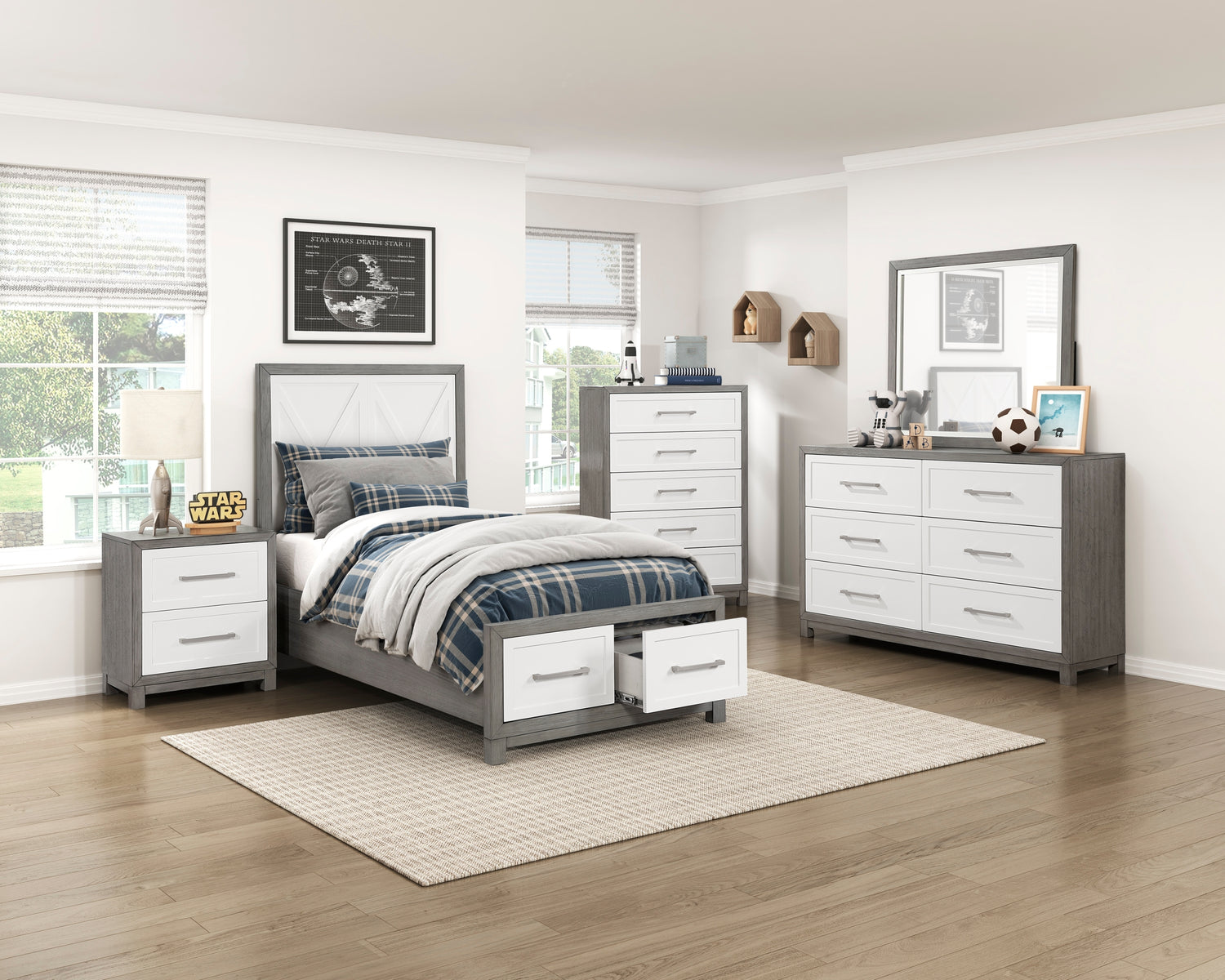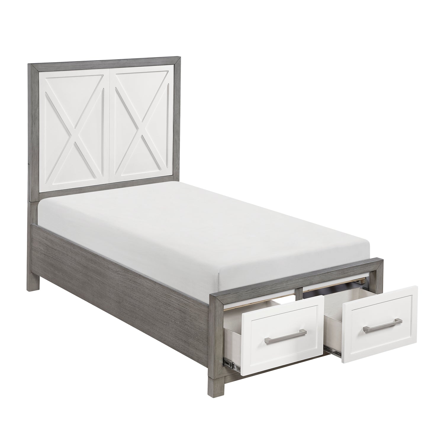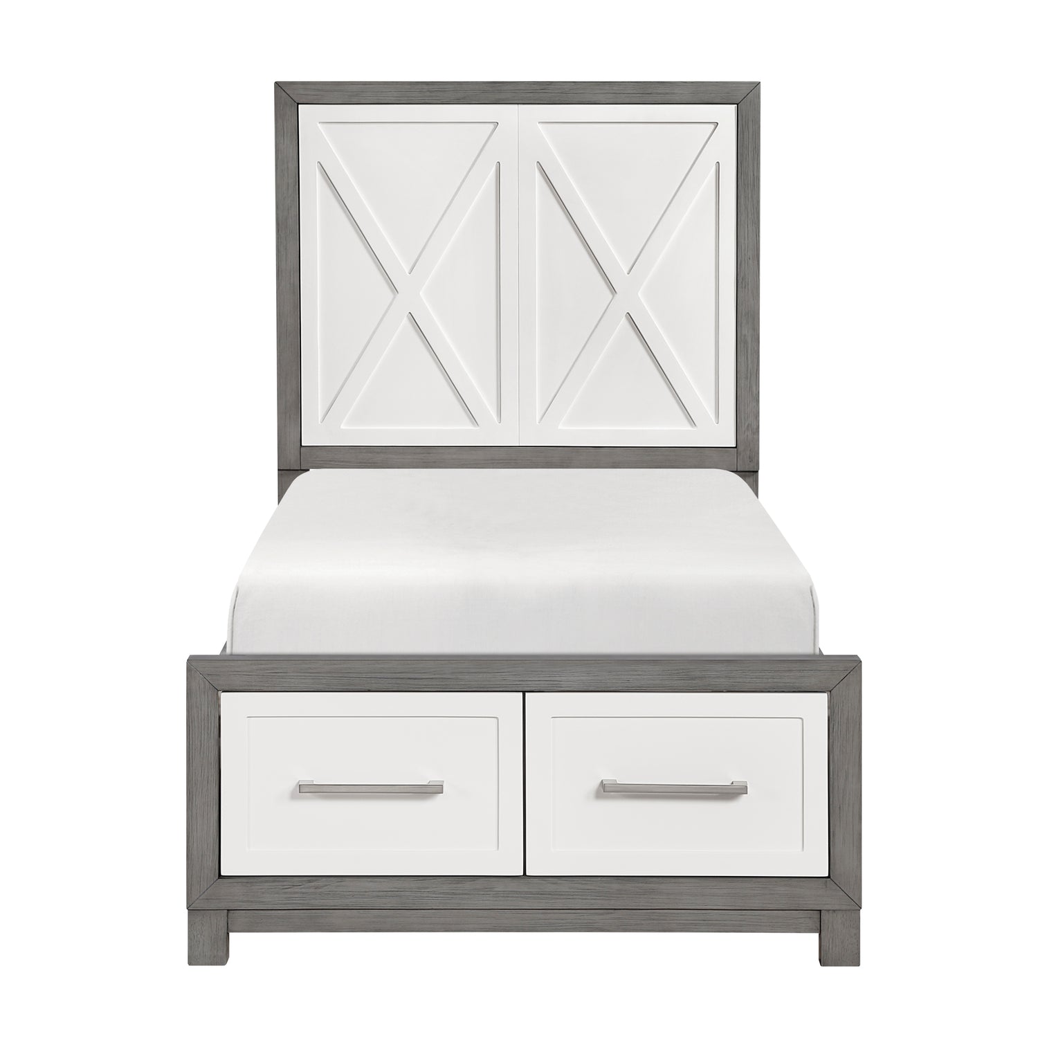 Contemporary Twin Size Platform Bed with Footboard Storage Ivory and Gray Finish Bedroom Furniture 1pc