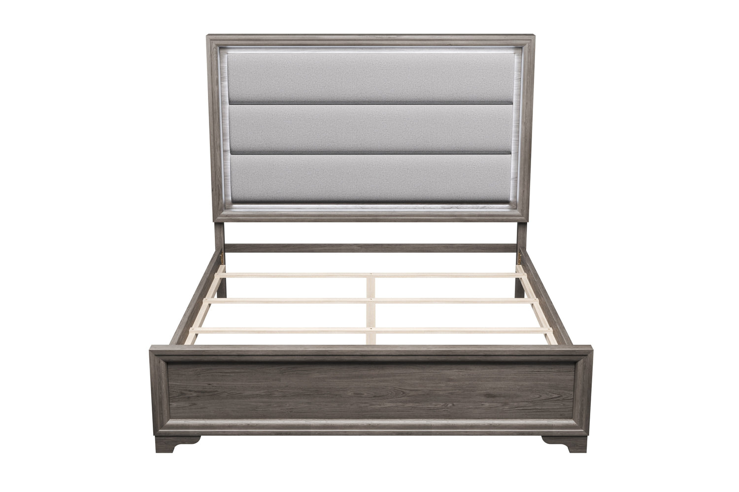 1pc Queen Size Bed Horizontal Tufting Headboard LED Lights Light Brown Finish Bedroom Furniture is available