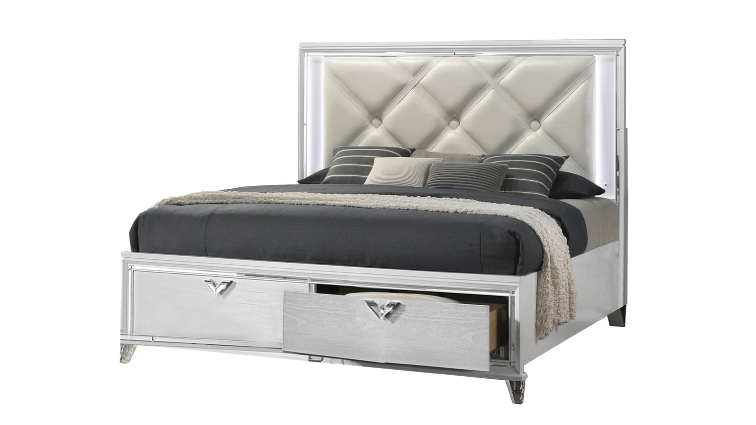 Modern Style King bed with LED Accents & V-Shaped handles is available