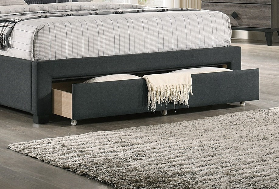 California King Size Bed 1pc Button Tufted Arch Design Headboard Storage Footboard Chaorcoal Finish Bedroom Furniture is available