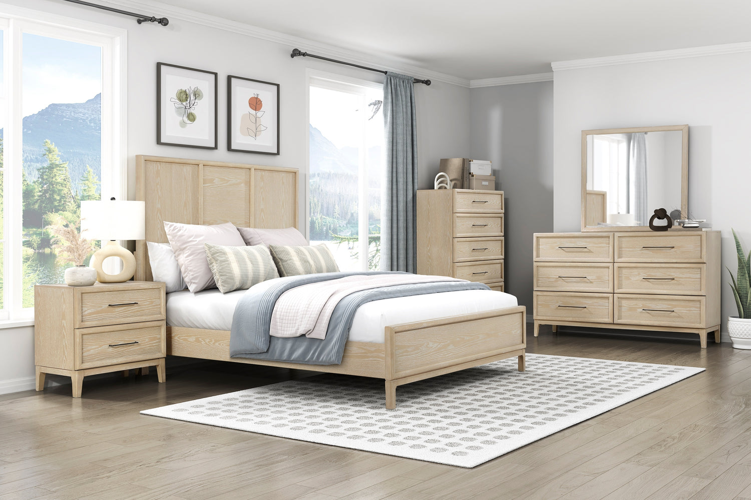 Contemporary Queen Size Panel Bed Light Brown Finish Wooden Bedroom Furniture 1pc