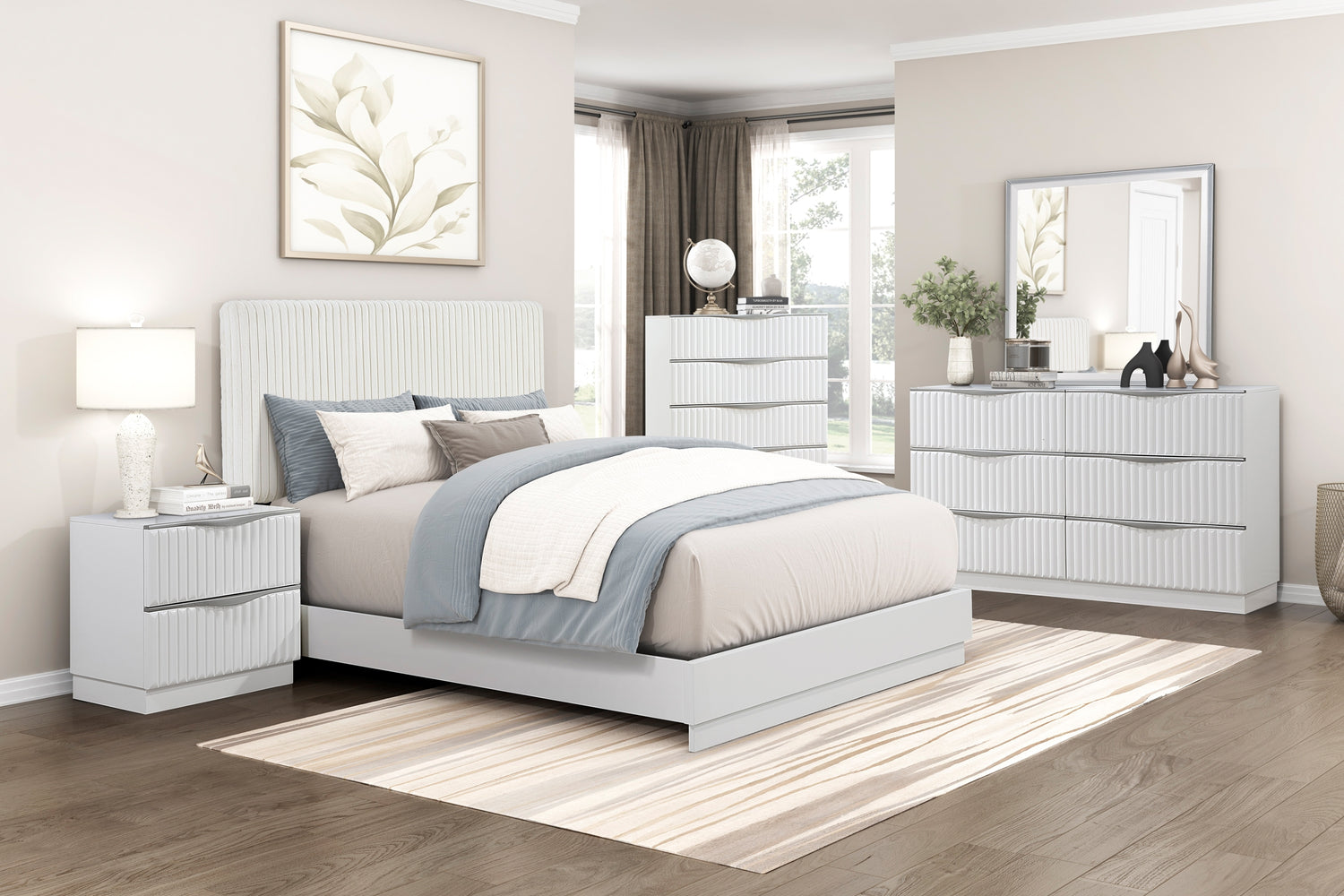 Luxurious Pearl White Finish King Bed Soft Upholstery Headboard Panel Glam Bedroom Furniture 1pc
