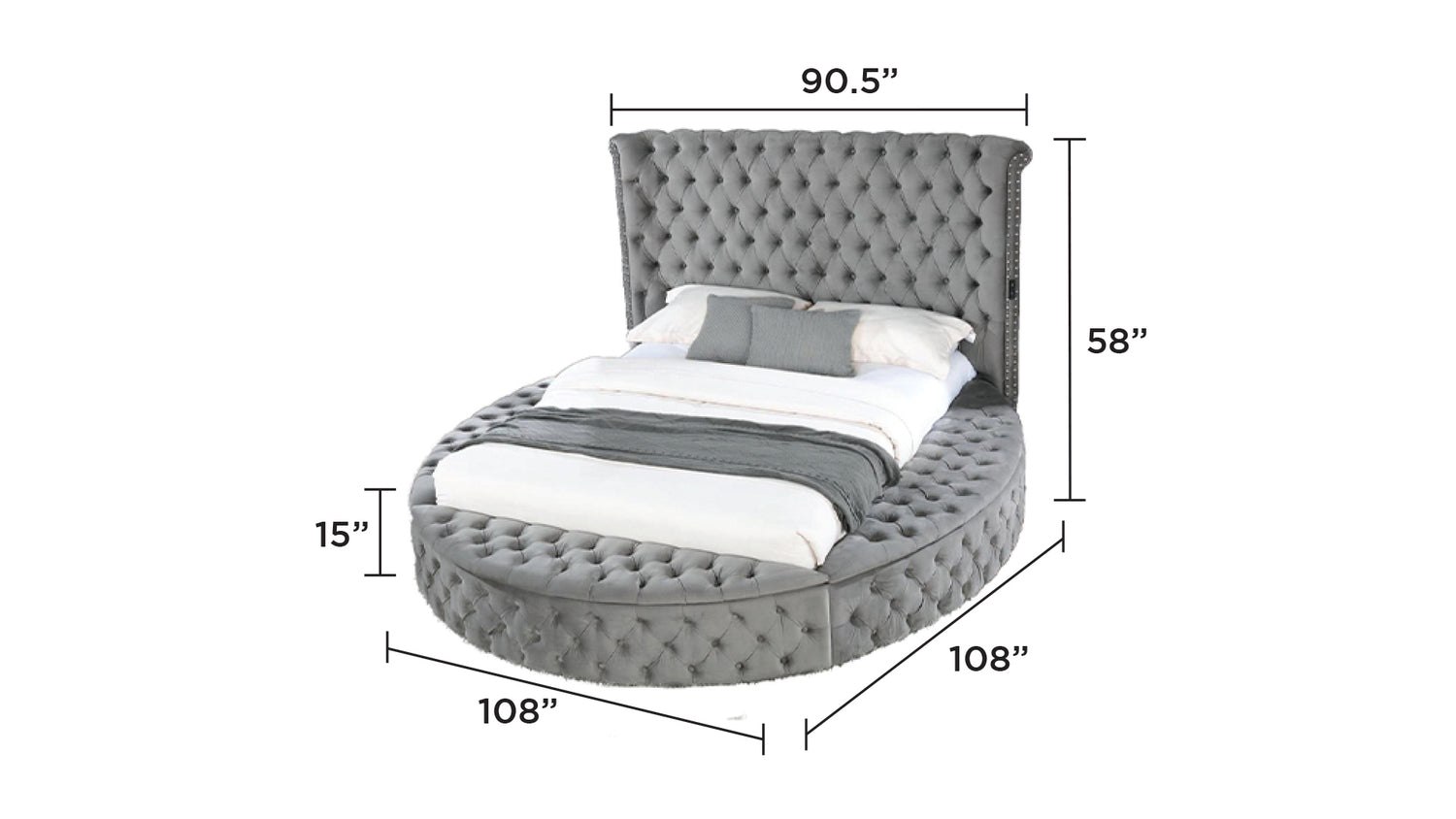 - Dimensions- Queen bed: 108'D x 108'W x 58'H