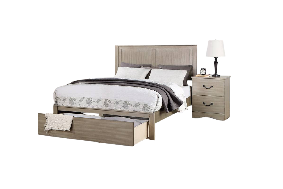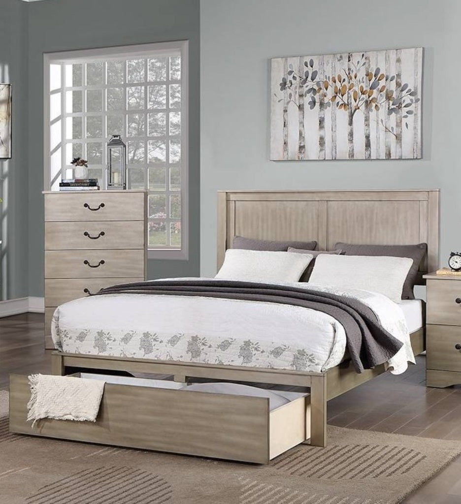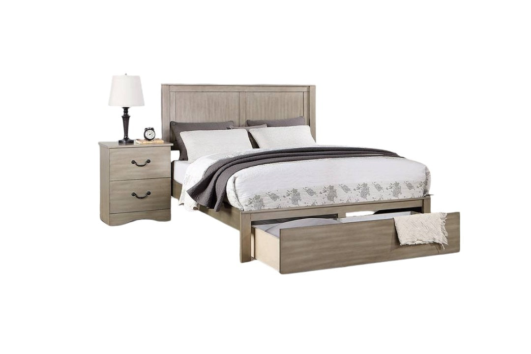 Rustic Style 1pc California King Size Two Panel Bed Rectangular Shaped Footboard Drawer Antique Silver Finish Bedroom Furniture is available
