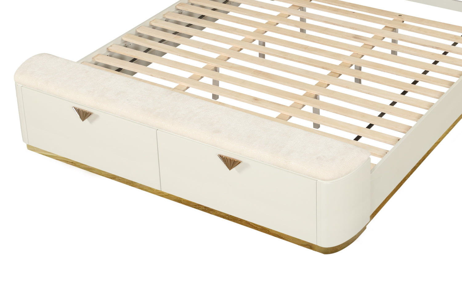 La Pierre Modern Style King Upholstered Bed Made with Wood, Footboard Drawers and Gold Accents in Beige (CA WAREHOUSE)