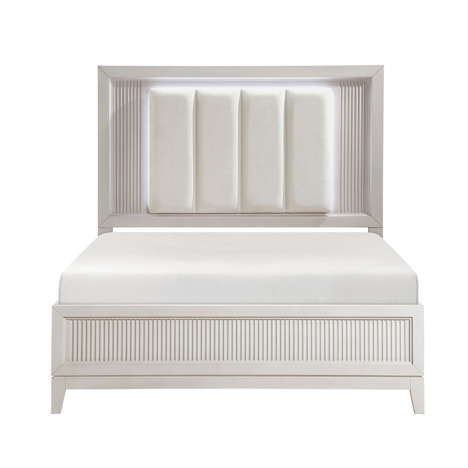 Antique White Finish Queen Bed with LED Headboard Upholstered Cushion Modern Bedroom Furniture 1pc, Reeded Fronts is available