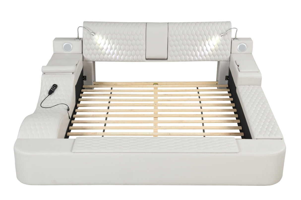 Zoya Smart Multifunctional Queen Size Bed Made with Wood in White is available