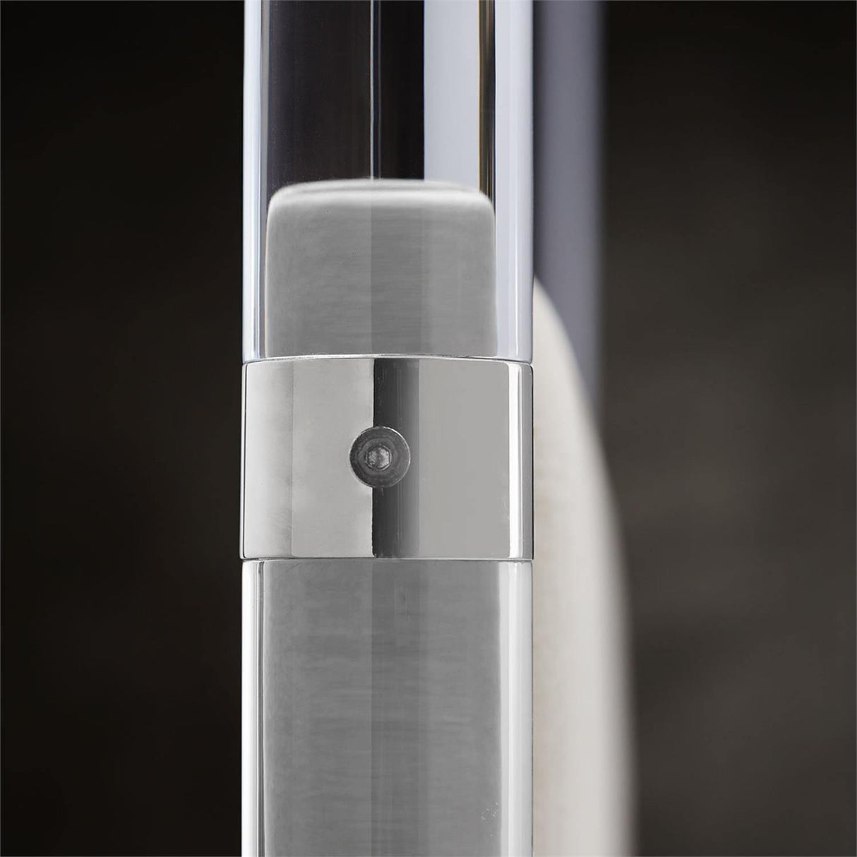 - Acrylic posts connect with polished stainless steel for a sleek, glossy effect.
