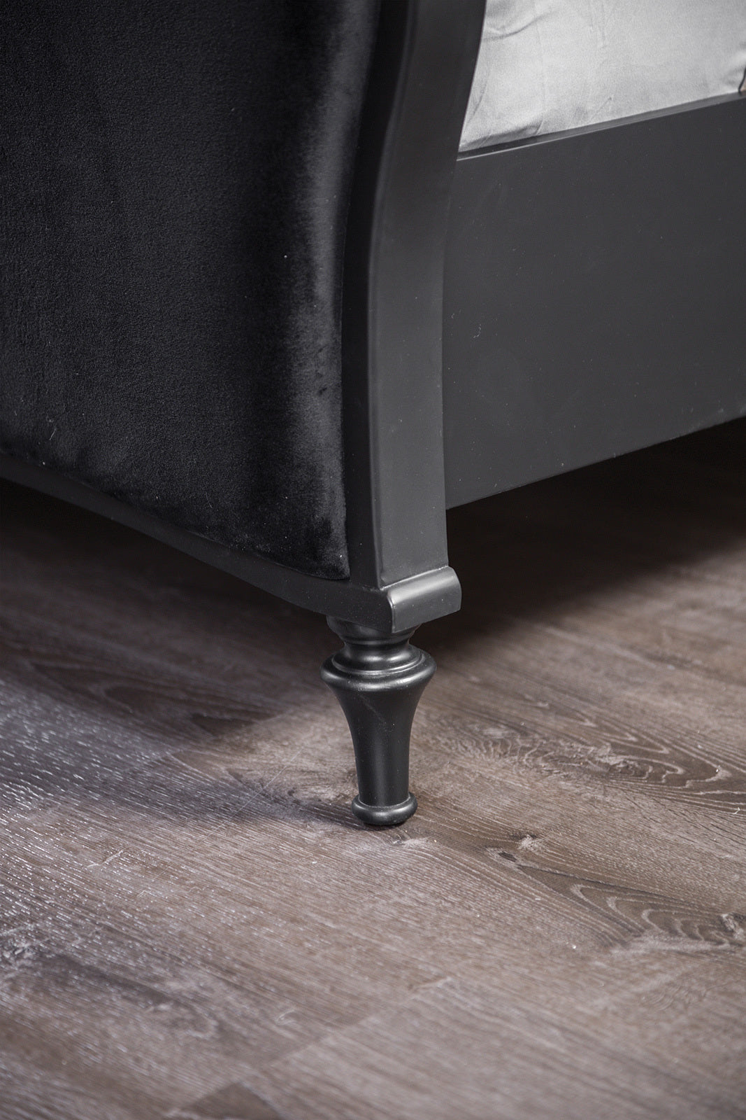 Glam Black Fabric, Solid Wood, Others Padded Channel Headboard Turned Wood Leg. Upholstery Color - Black