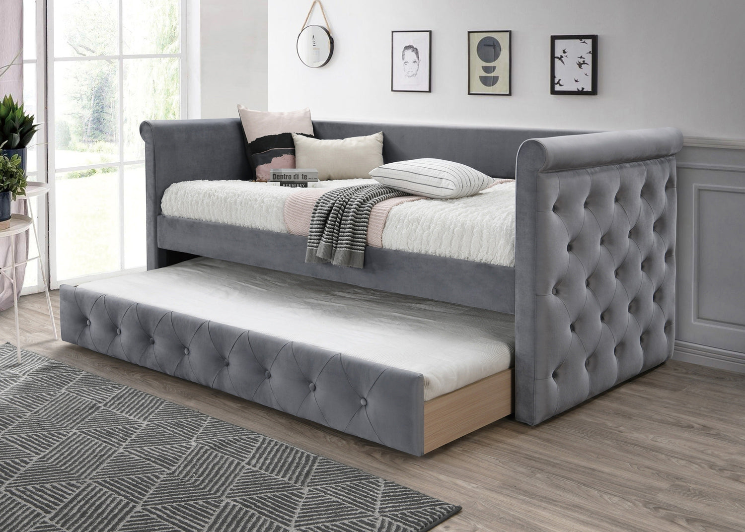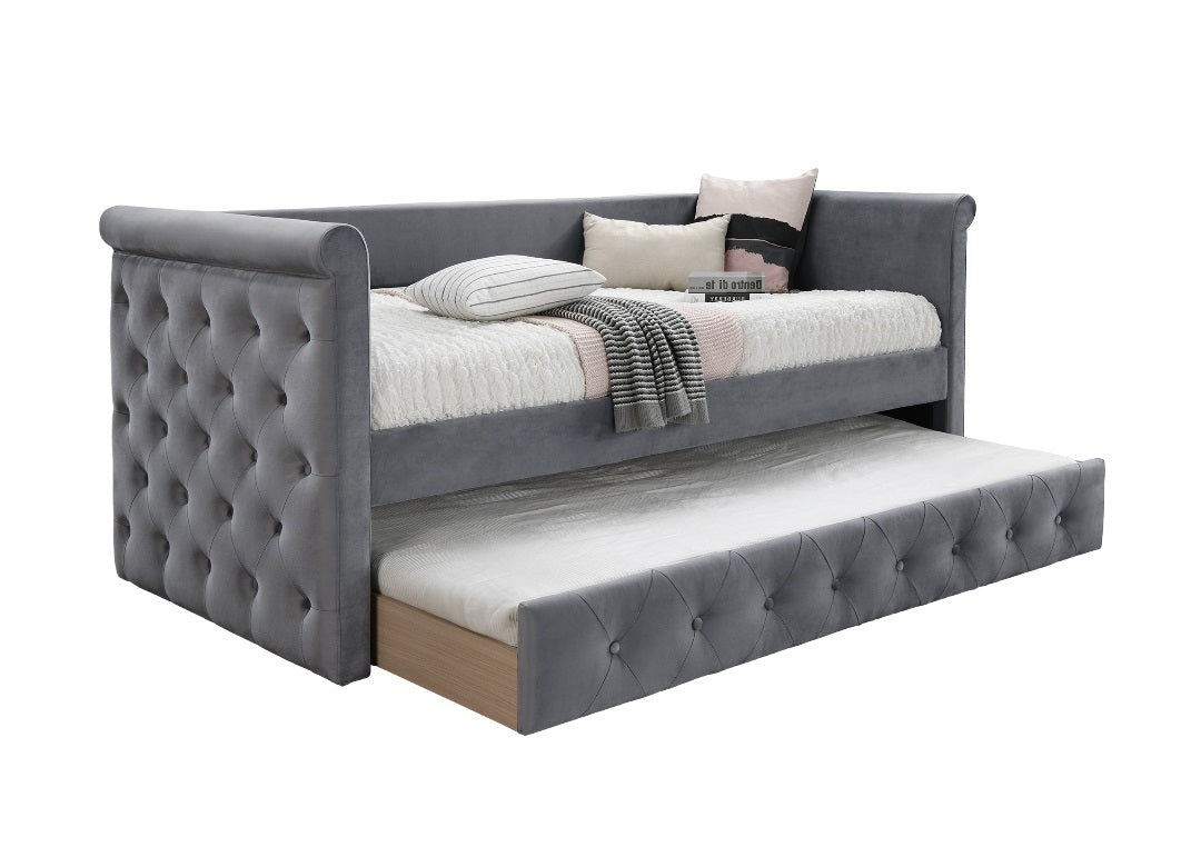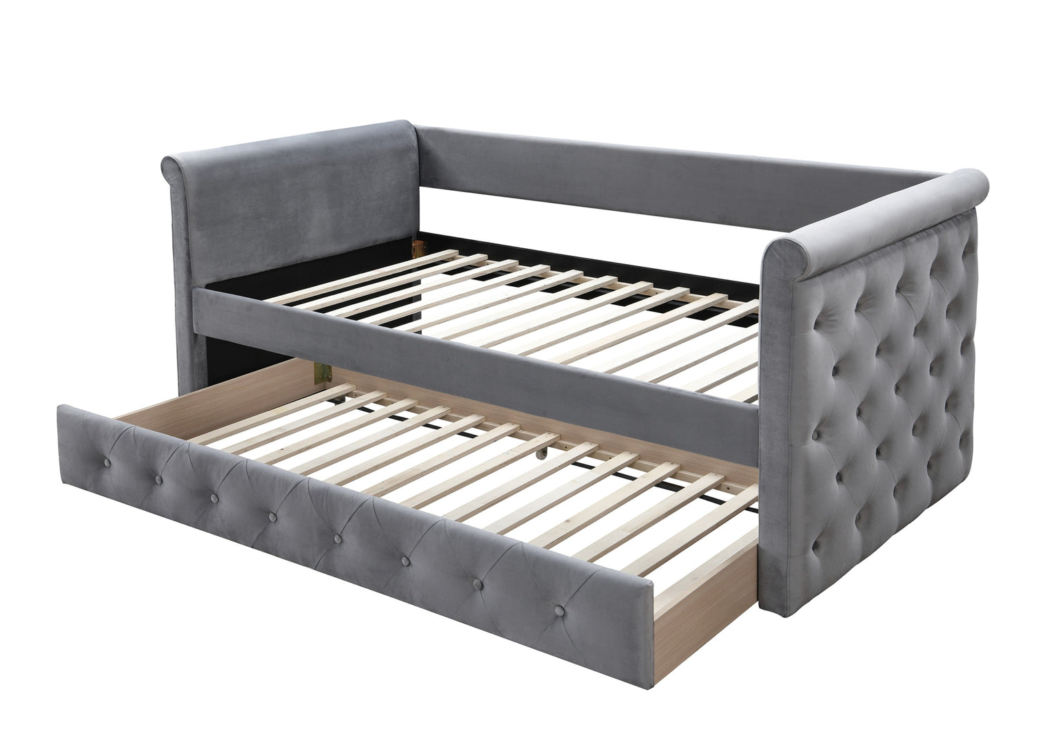 Contemporary Style 1pc Day Bed w/ Slat Trundle Button Tufted Gray Finish Bedroom Furniture is available