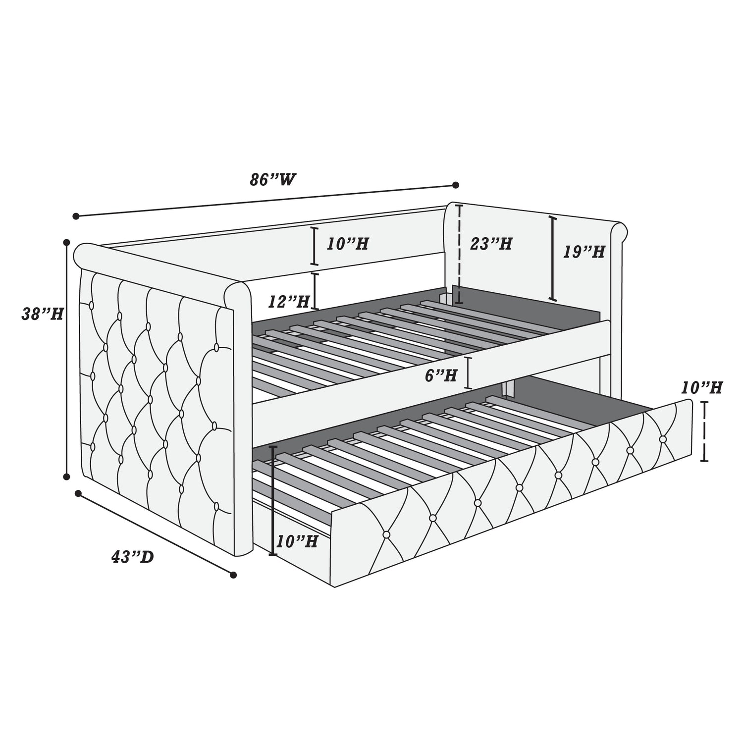 Button tufted design day bed with slats and trundle consists versatility as being a sofa and also a guest bed. The soft fabric and cushion makes this piece of furniture as cozy as it can be, and the trundle bed can provide extra space for your guests for a sleepover.