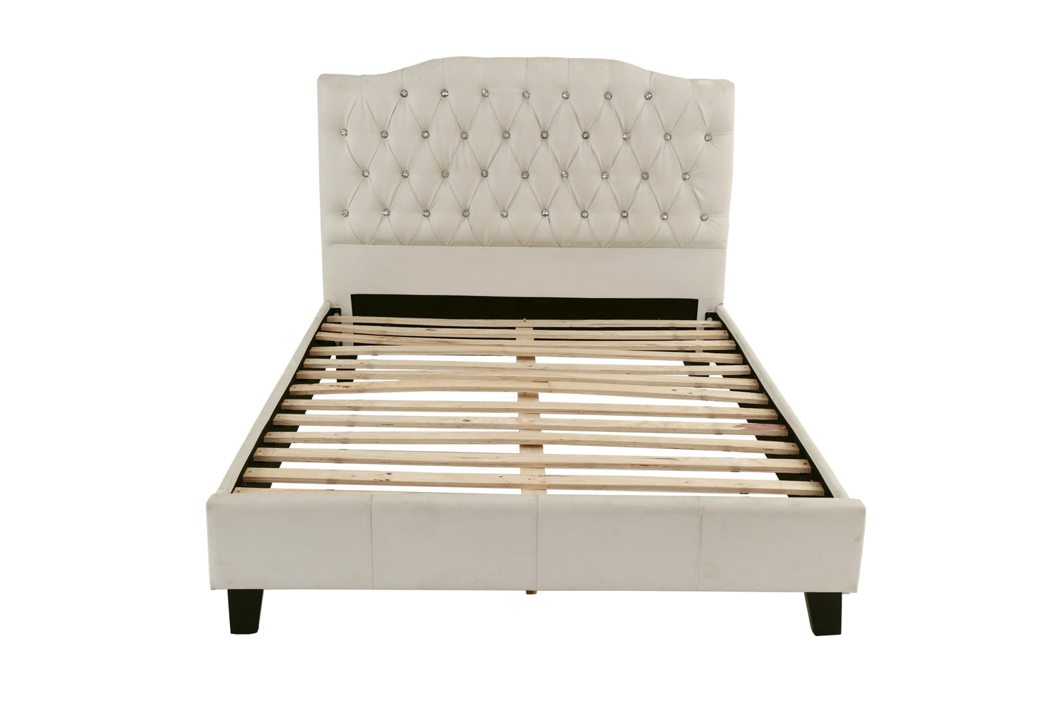 Gorgeous Off-White / Beige Faux Leather Queen Size Bed 1pc Bedframe Modern Tufted Upholstered Headboard Bedroom Furniture is available