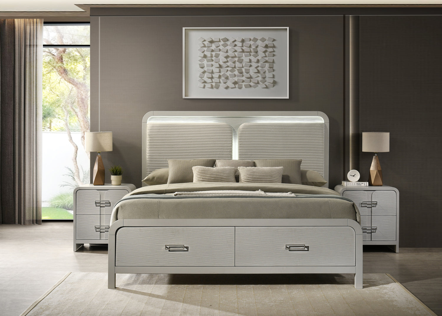 • Neutral color palette complements various bedroom decor styles.