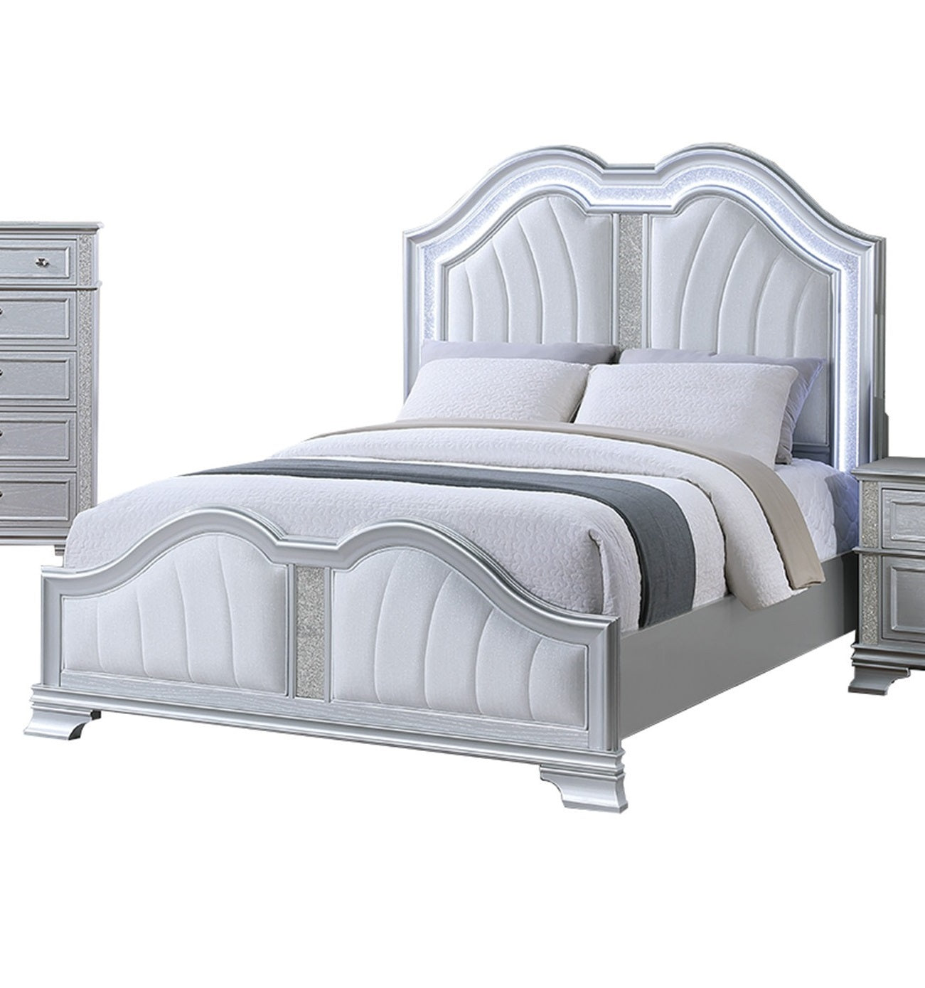 Contemporary Elegant Look Unique Design Full Size Bed Silver Finish Built In USB 1pc Bedroom Bed is available