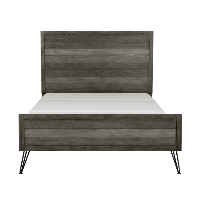 Unique Design 3-Tone Gray Finish 1pc Eastern King Bed Metal Legs Horizontal Slat Design Headboard Footboard Bedroom Furniture