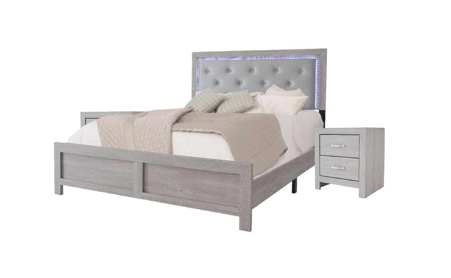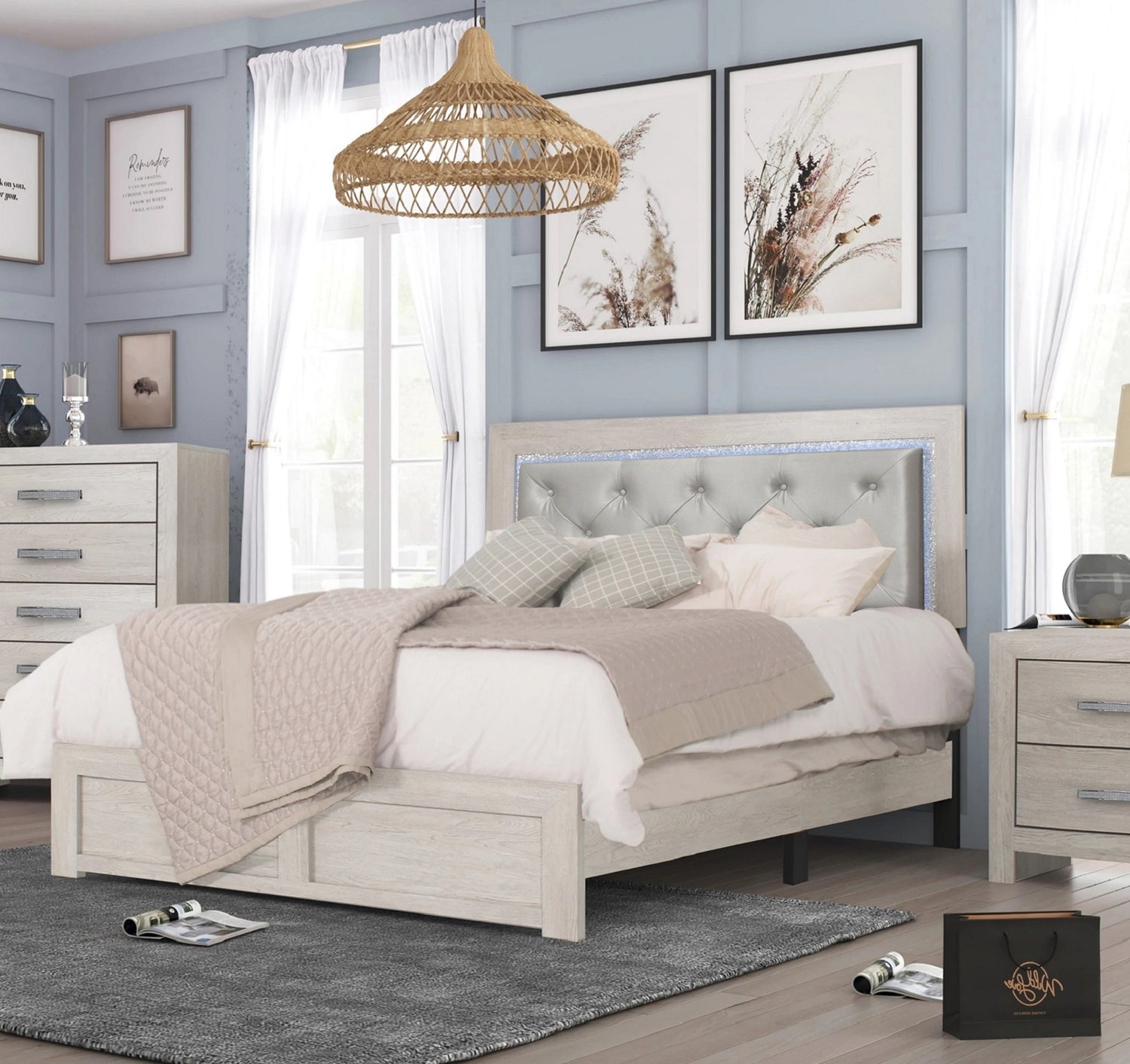 style collection. These pieces feature natural-looking finishes and designs of clean lines. It comes with LED & Upholstered Headboard for more style to your bedroom.
