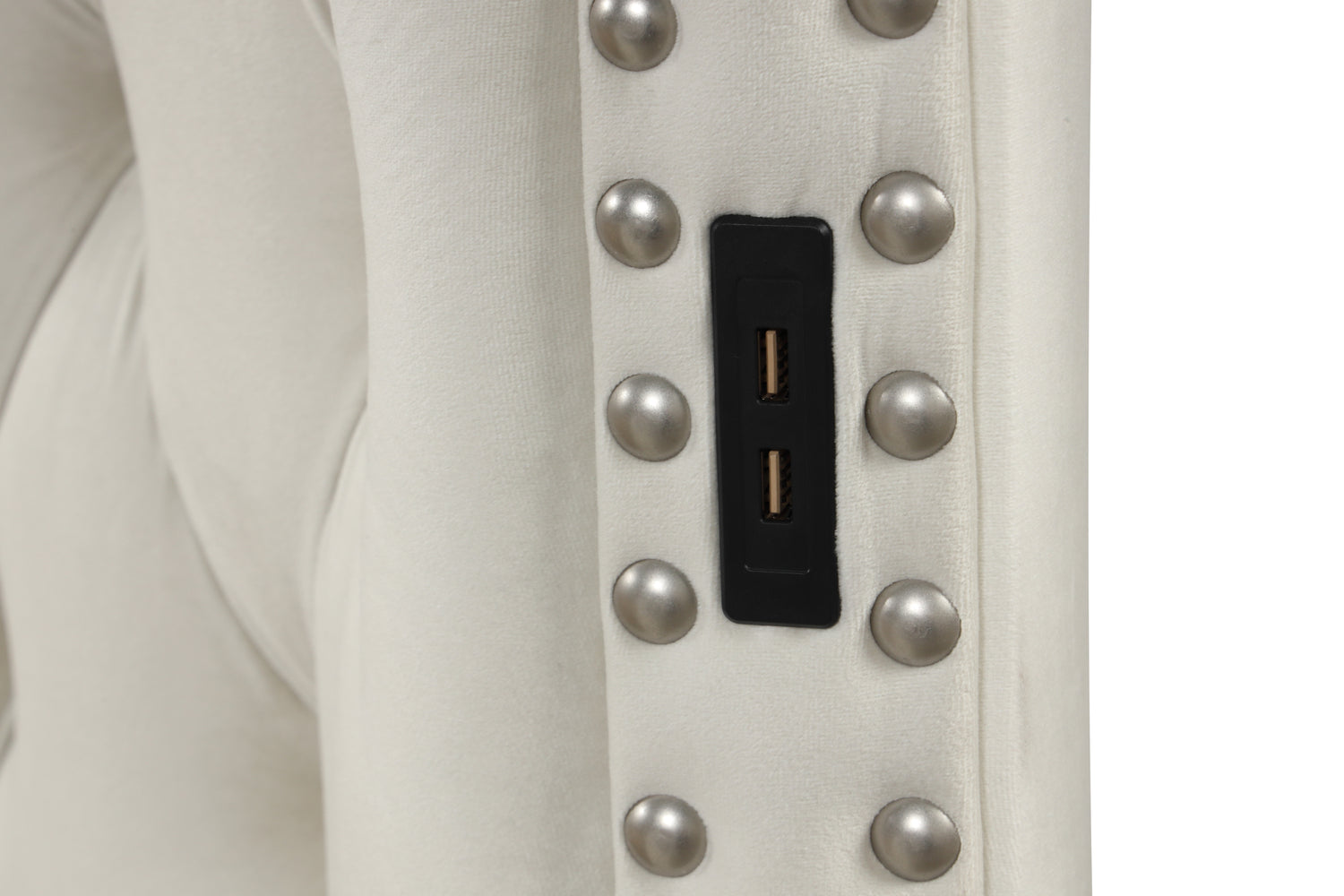 - This bed is upholstered in velvet fabric, providing a luxurious and comfortable feel. It also includes a USB port for added convenience.