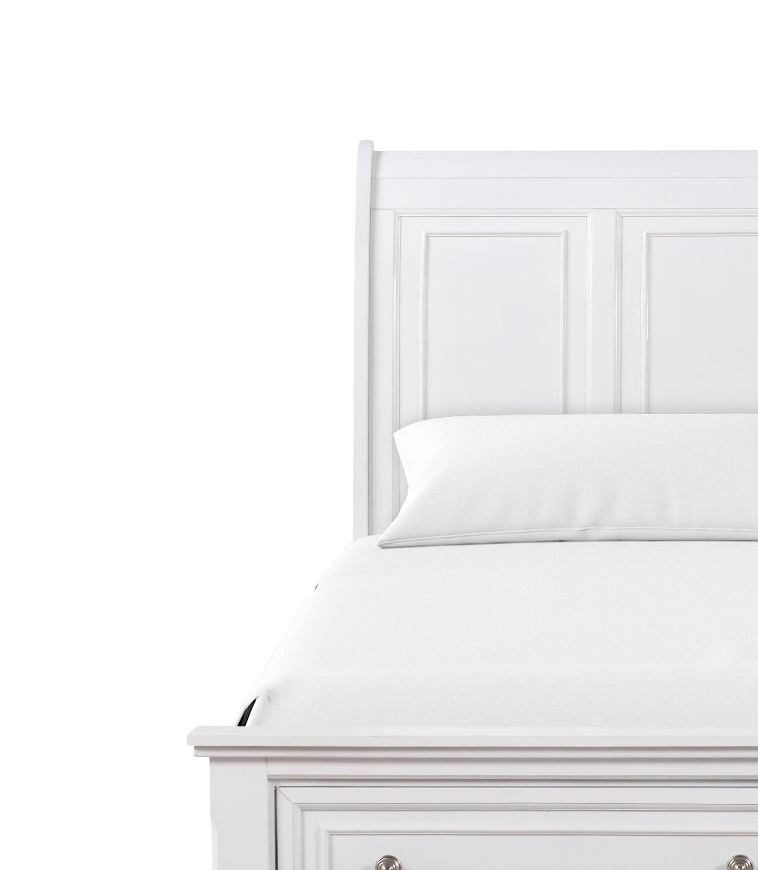 - Convenient storage drawers in the footboard help you keep bedding and accessories organized.