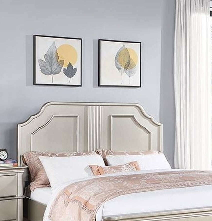 Traditional Style Queen Size Bed 1pc Two Panel Bed Silver Finish Bedroom Furniture