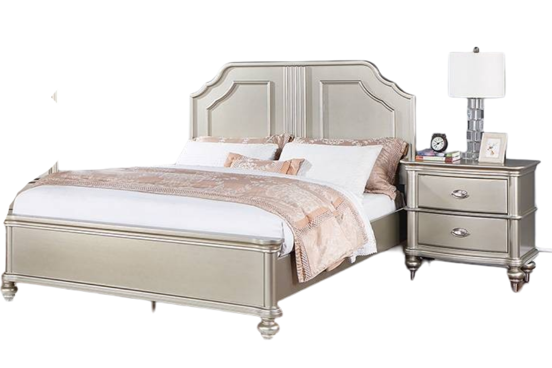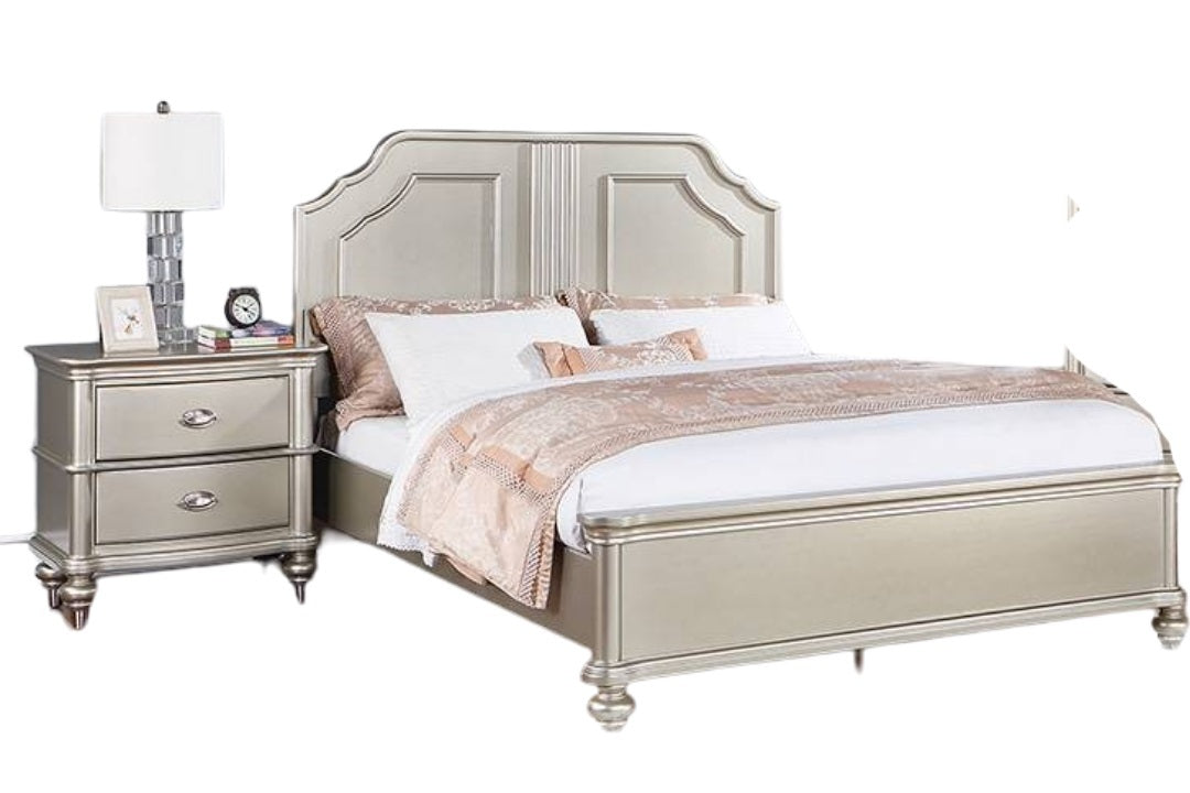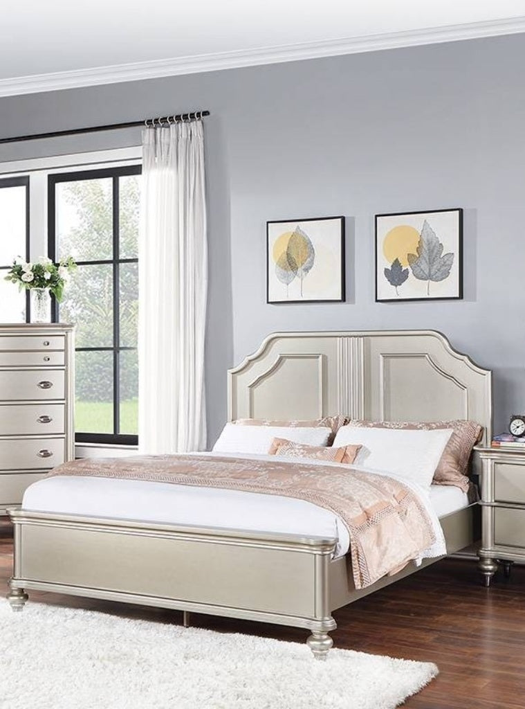 Traditional Style Eastern King Size Bed 1pc Two Panel Bed Silver Finish Bedroom Furniture