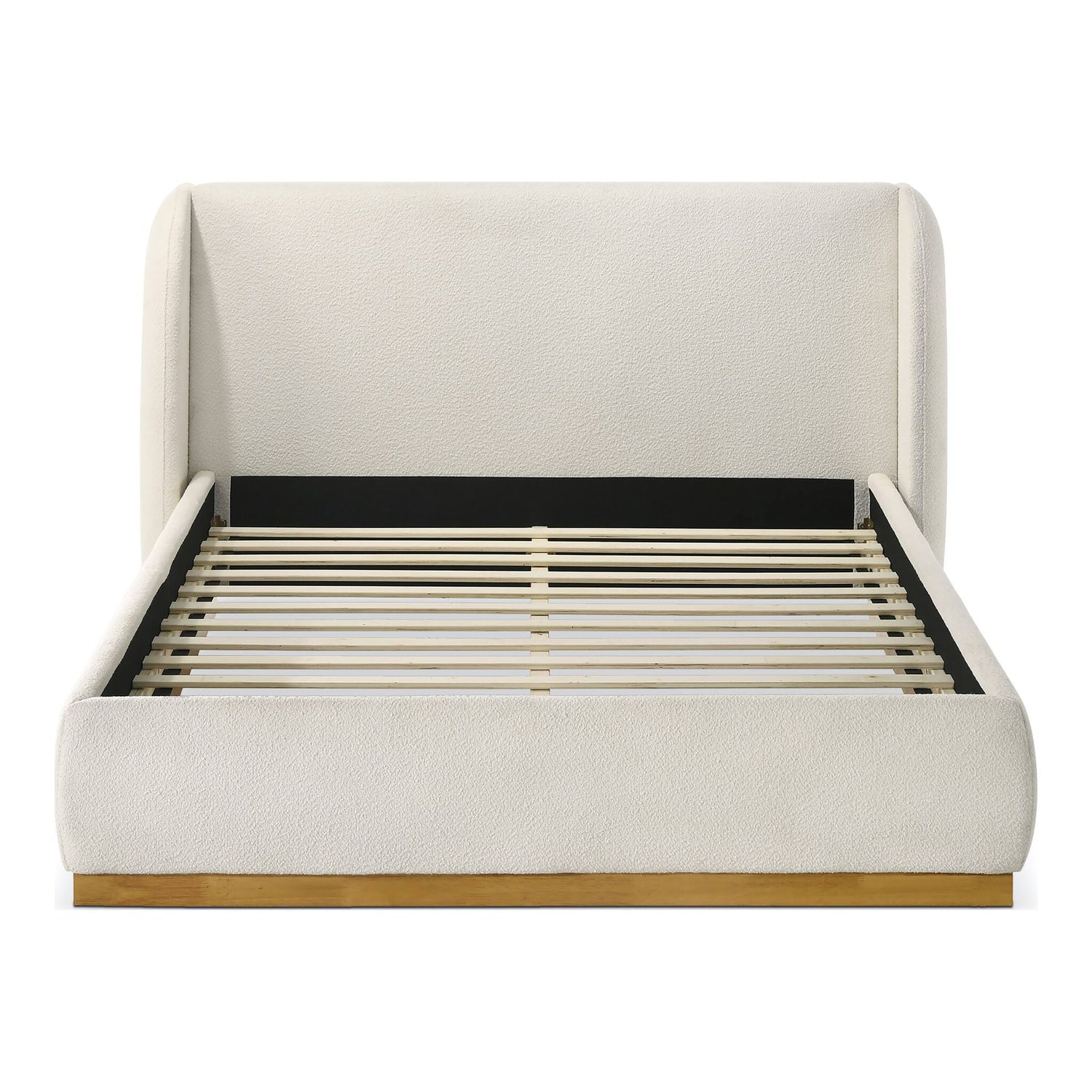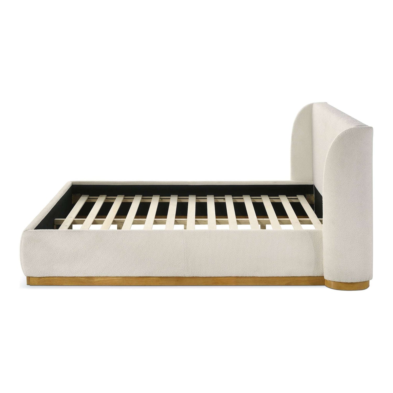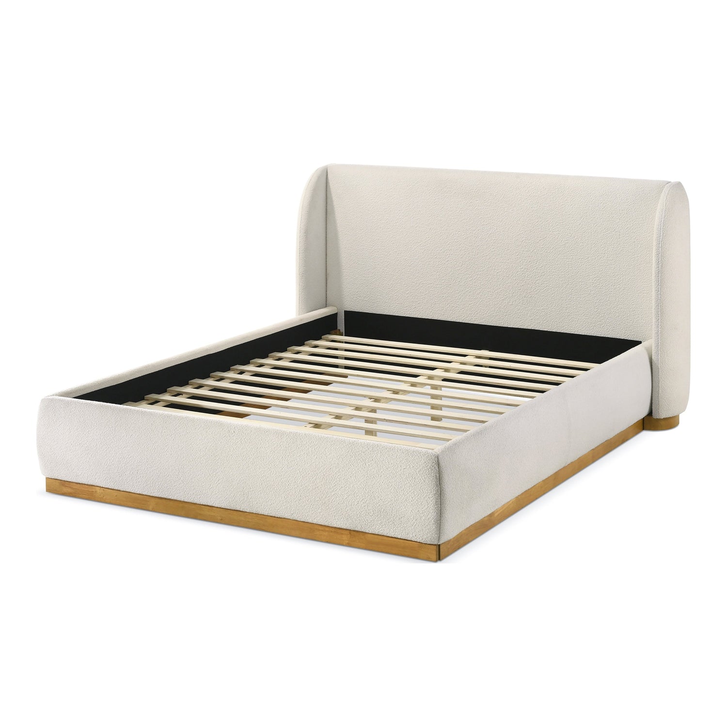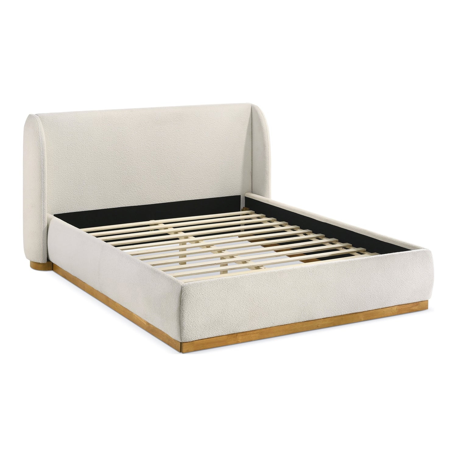 Showcase your space with a touch modern elegance to your bedroom with this plush boucle-upholstered platform bed. A sturdy wood base adds warmth, while the durable slat system provides lasting support—no box spring needed. Its wingback headboard offers both style and comfort, creating a cozy retreat for reading or lounging. Designed for both style and relaxation, this bed is a statement piece for serene, restful nights.