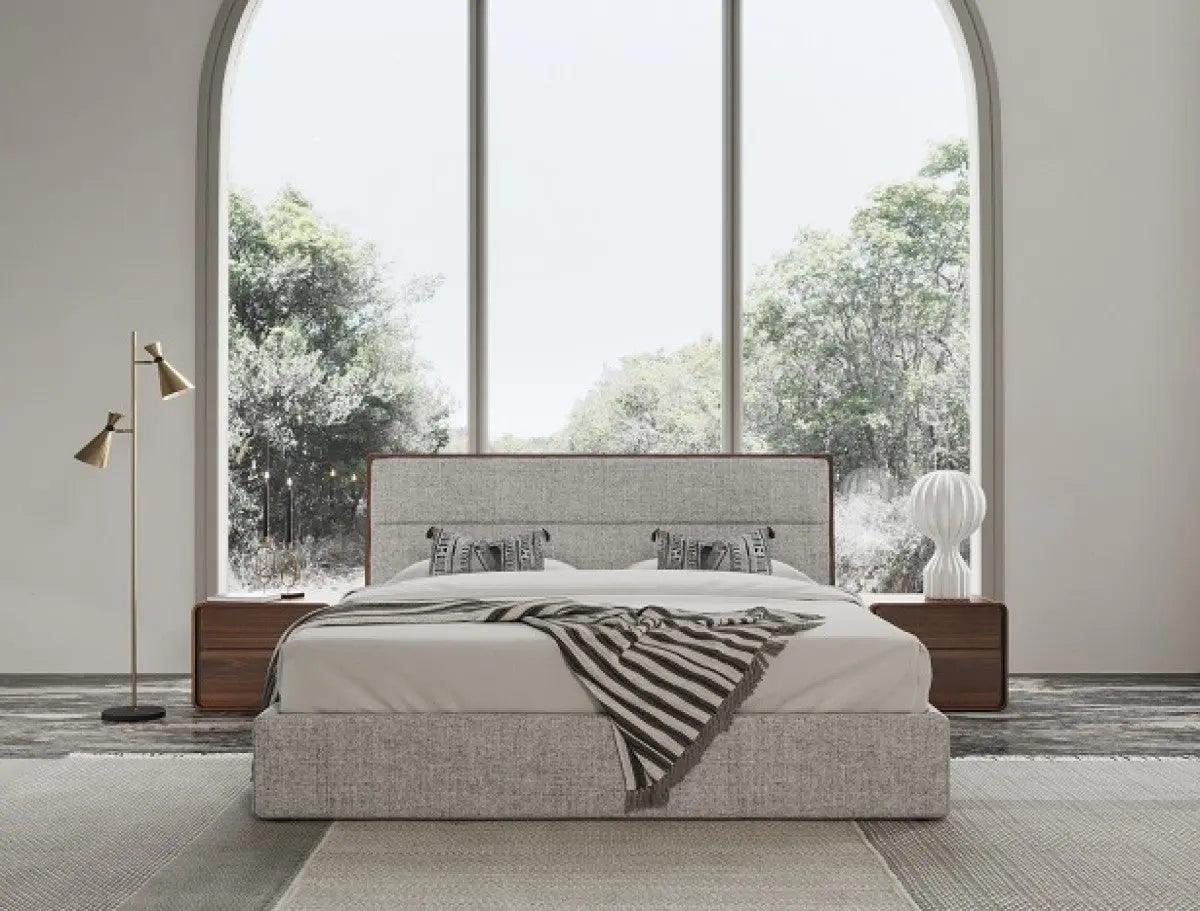 Modrest Dustin Modern Grey Fabric & Walnut Trimmed Bed Vgmabr-99-Bed