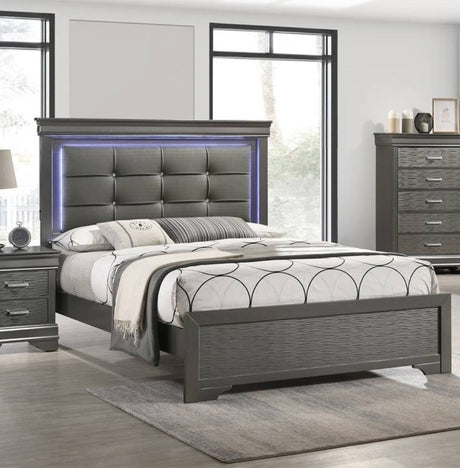Gray Finish 1pc Queen Size Bed Square Button Tufting LED Lights Gray Finish Bedroom Furniture