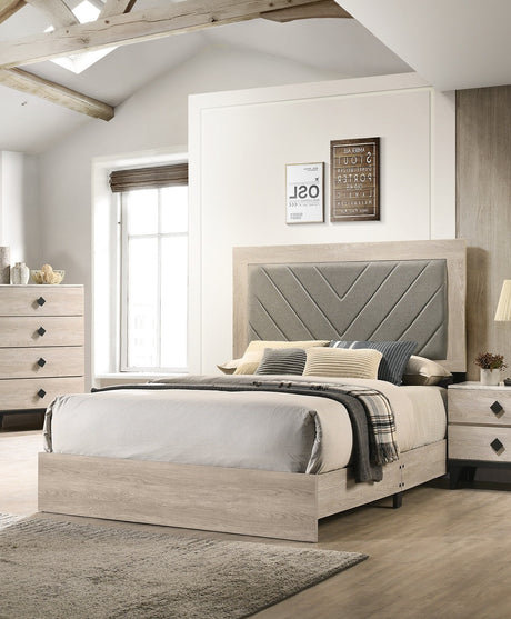 Contemporary Gray Oak Finish King Bed Durable Wooden Bedroom Furniture 1pc Line Pattern Headboard