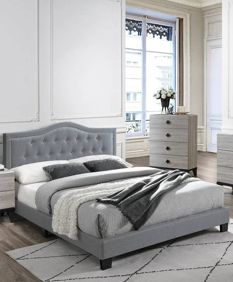 Contemporary Grey Finish Unique King Size Bed 1pc Bedroom Furniture Unique Lines Headboard Wooden