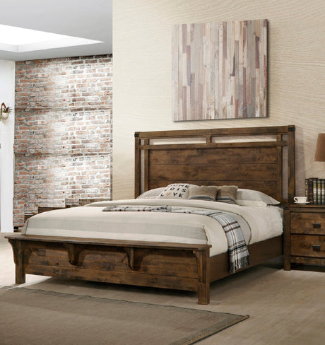 1pc King Size Bed Rustic Beige Gray Finish Wooden Bedroom Furniture Geometric Design Chevron Pattern