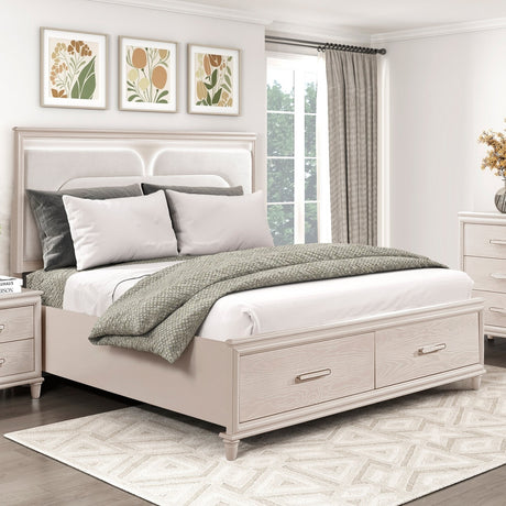 Modern bedroom Storage Eastern King Size Bed Drawers Storage Headboard Footboard 1pc Bed Only.
