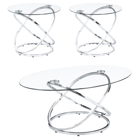 3 Pc Coffee Table Set - Warren 3-piece Occasional Set Chrome and Clear | Coaster