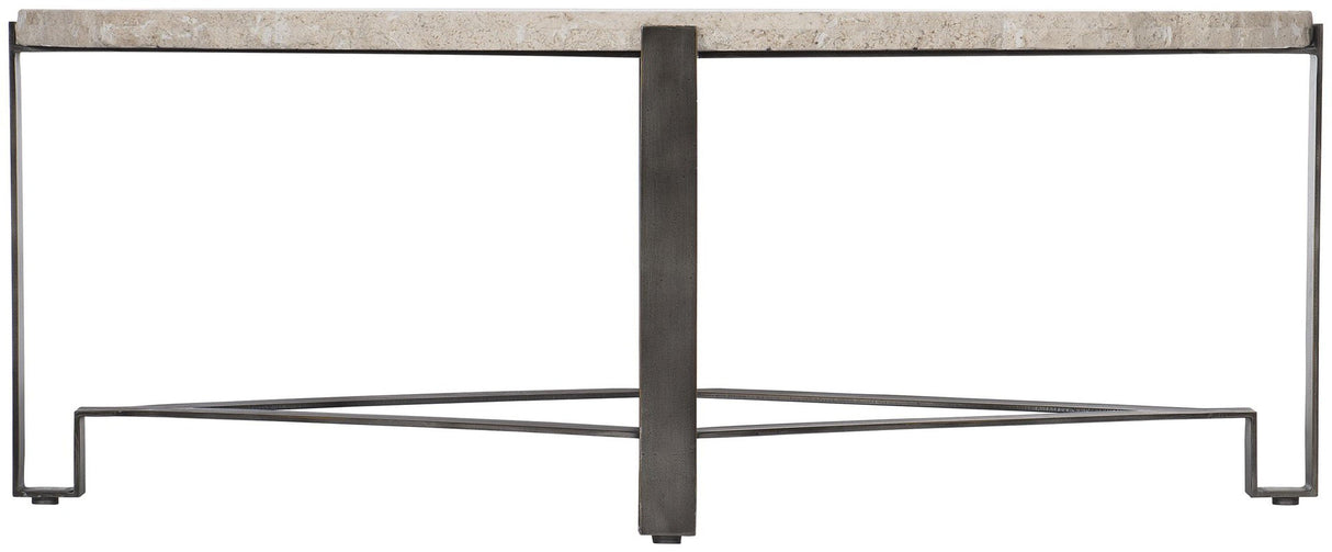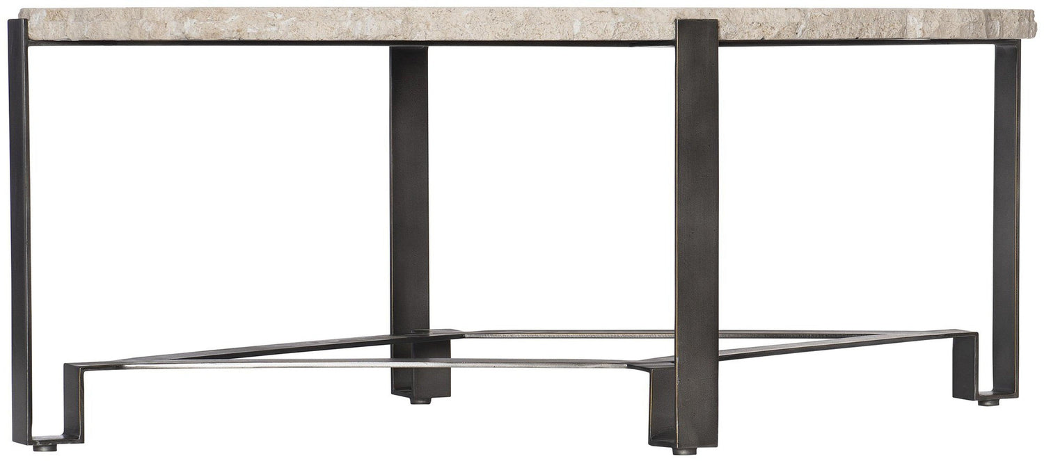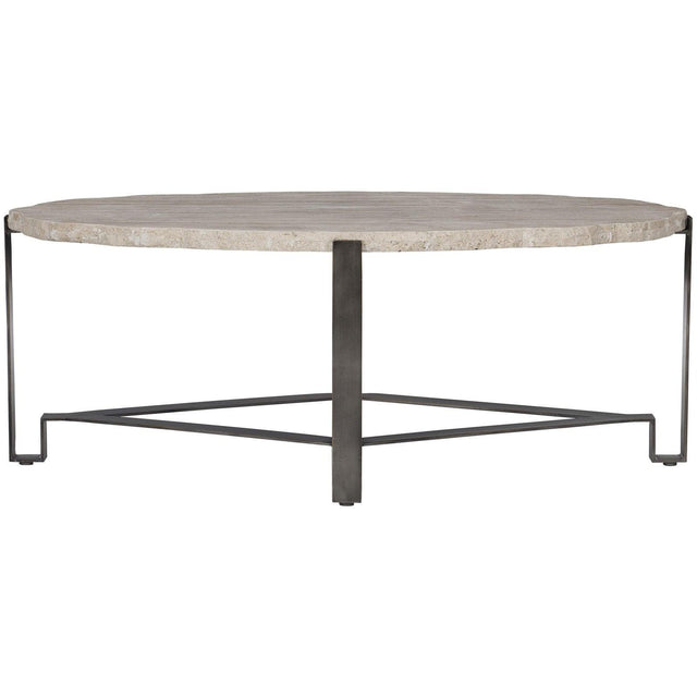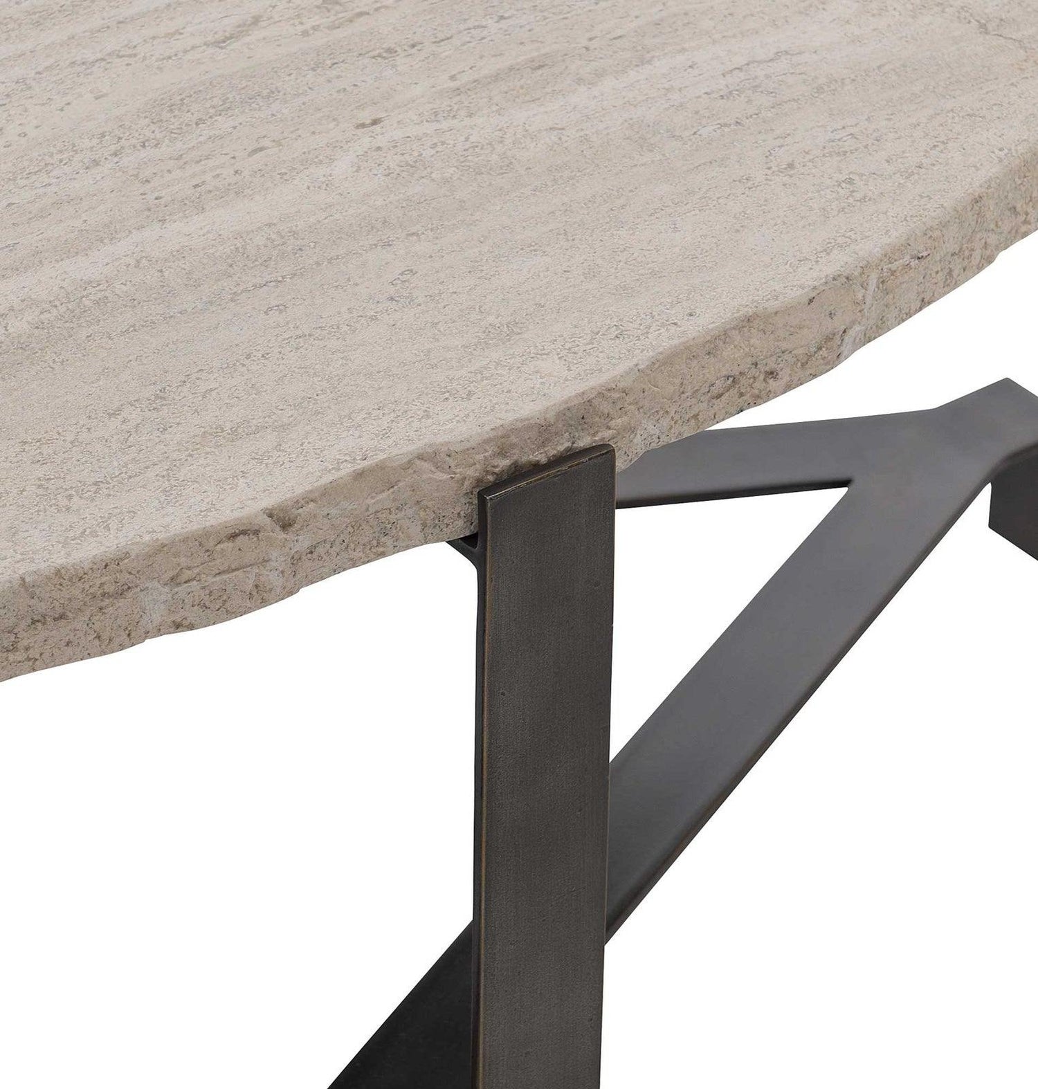 Sayers 48-Inch Oval Cocktail Table Travertine Stone & Bronze – Bernhardt