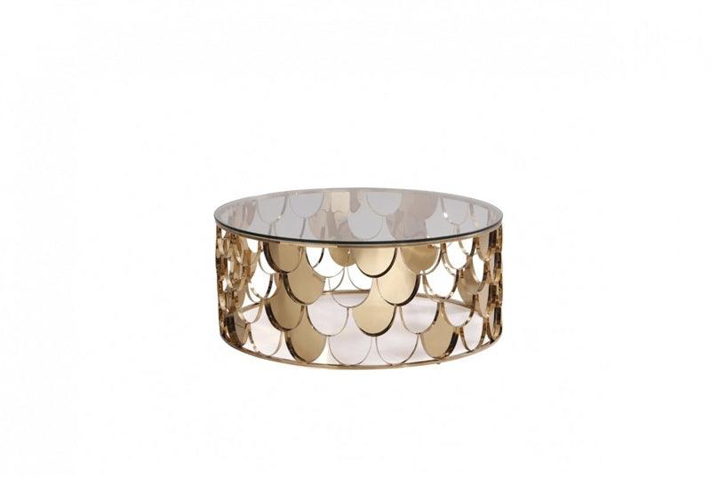 Modrest Javier Modern Glass & Gold Round Coffee Table Vgvcct088
