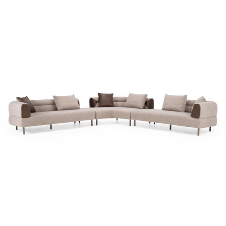 Divani Casa Frontier - Glam Beige Fabric Curved Sectional Sofa with Beige Pillows