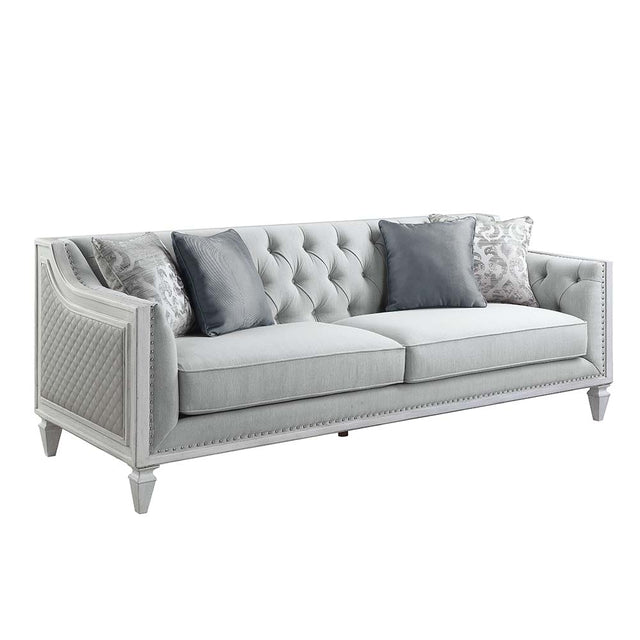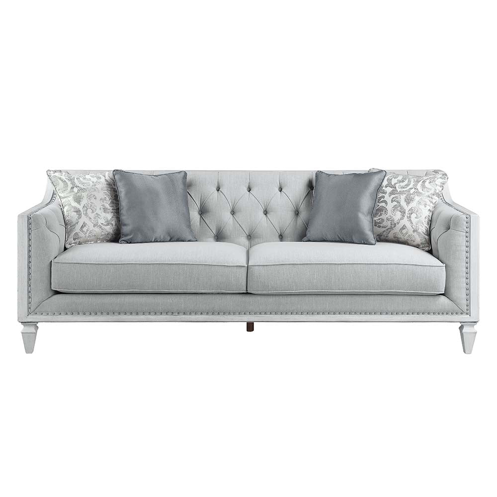 Katia Sofa W/4 Pillows LV01049 Light Gray Linen & Weathered White Finish | Acme
