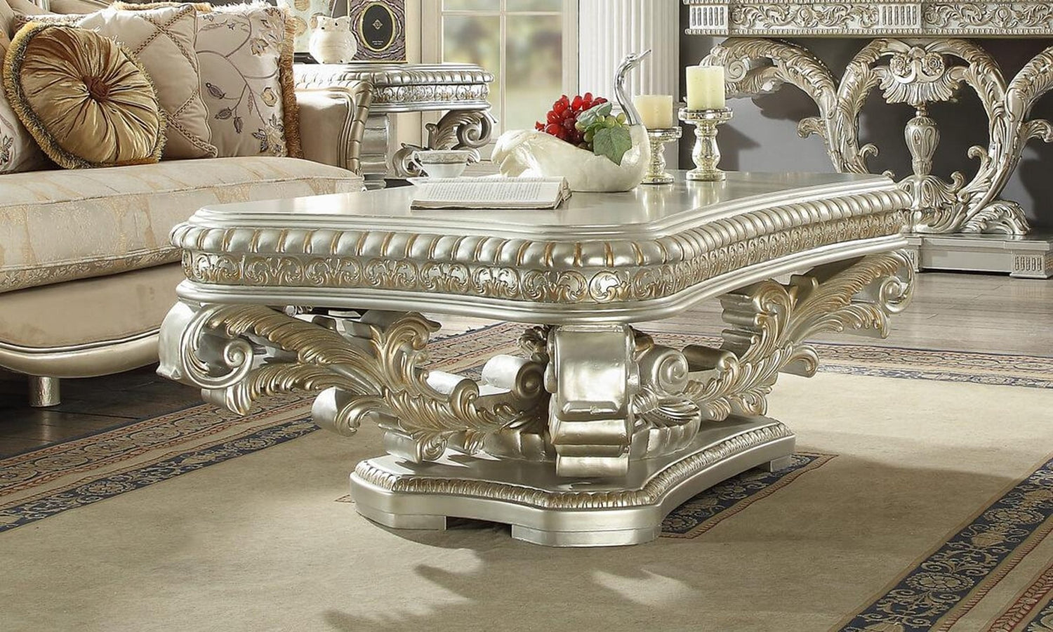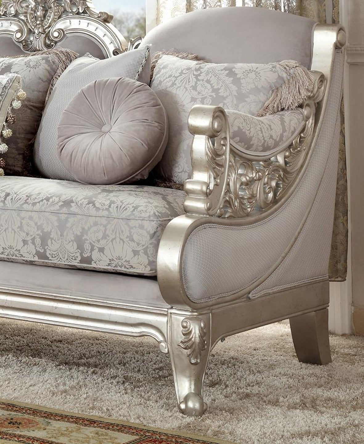 Hd-2662 Traditional Carved Wood Living Room Set In Metallic Silver Finish | Homey Design