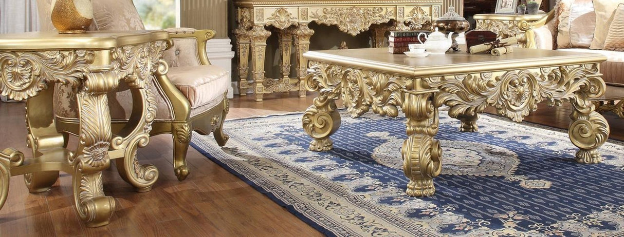 Hd-2663 Traditional Carved Wood Living Room Set In Champagne Chenille Finish | Homey Design