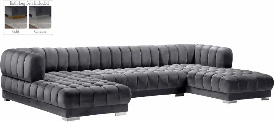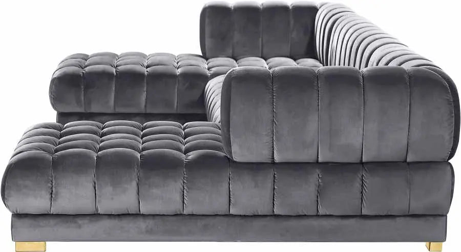 Redefine your living space with the Meridian Furniture Gwen 3-Piece Sectional in Grey, where comfort meets modern design. Upholstered in plush grey velvet, this sectional offers a sleek, inviting style perfect for both casual lounging and formal gatherings. Its modular design allows you to rearrange the pieces to fit any space, making it a versatile addition to your home.