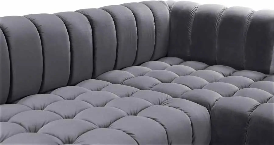 - Luxurious grey velvet upholstery for a soft, elegant feel