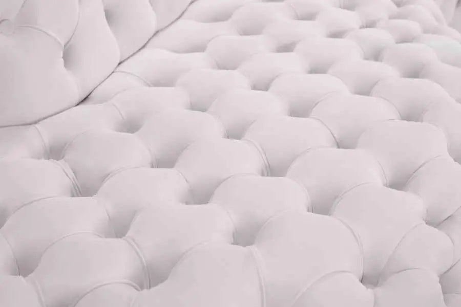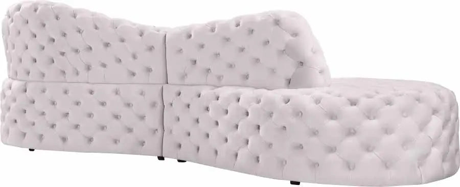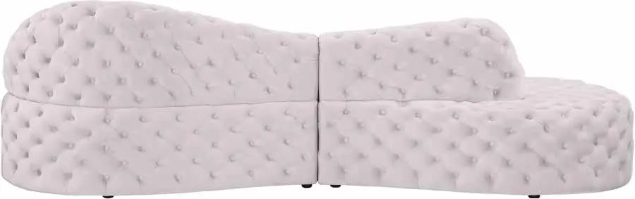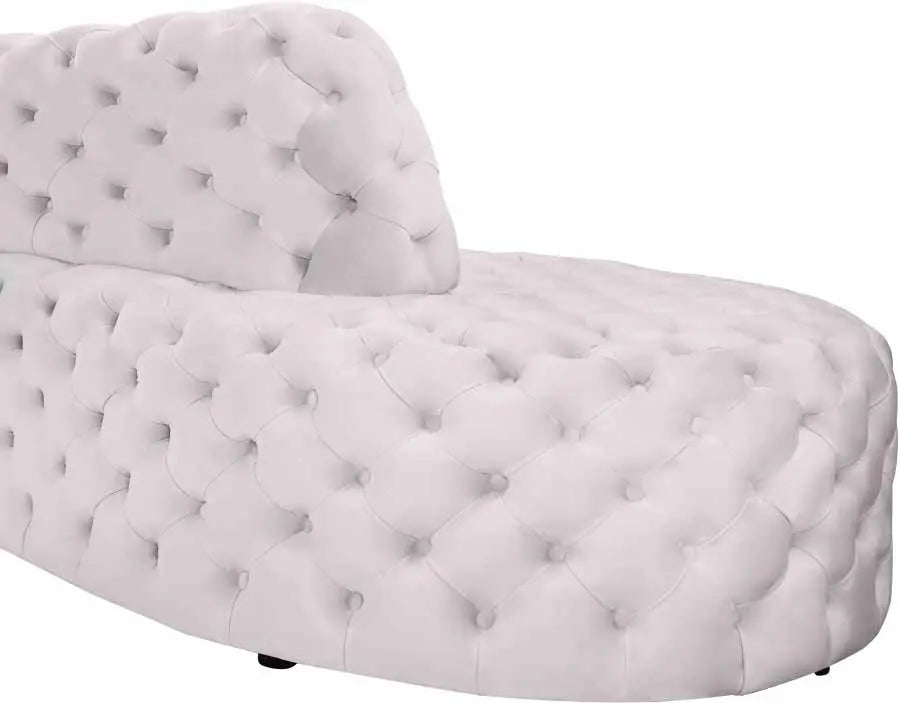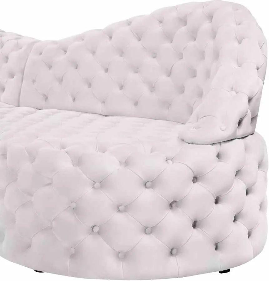 Settle in for family game night atop this Royal velvet sectional that’s upholstered with soft Cream velvet material. This 3-piece sectional has a lot to offer, with its deep seating and extra wide design that gives you oodles of room to move around and get comfy. The tufted design of the arms, back, and seats adds to their durability and soft, welcoming touch. The sectional comes in neutral colors to mesh nicely with other elements in your room.