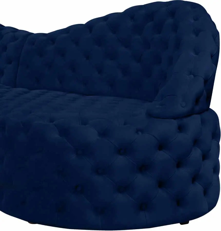 Settle in for family game night atop this Royal velvet sectional that’s upholstered with soft Navy velvet material. This 3-piece sectional has a lot to offer, with its deep seating and extra wide design that gives you oodles of room to move around and get comfy. The tufted design of the arms, back, and seats adds to their durability and soft, welcoming touch. The sectional comes in neutral colors to mesh nicely with other elements in your room.