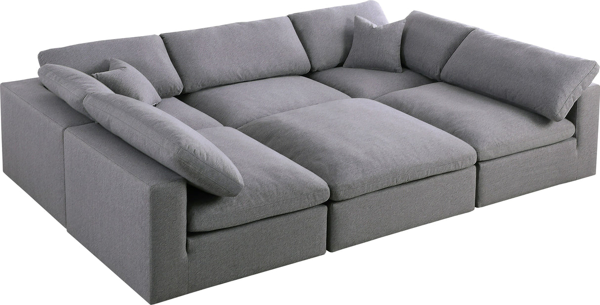 Serene Gray Dark Linen Fabric Deluxe Cloud Modular Sectional
