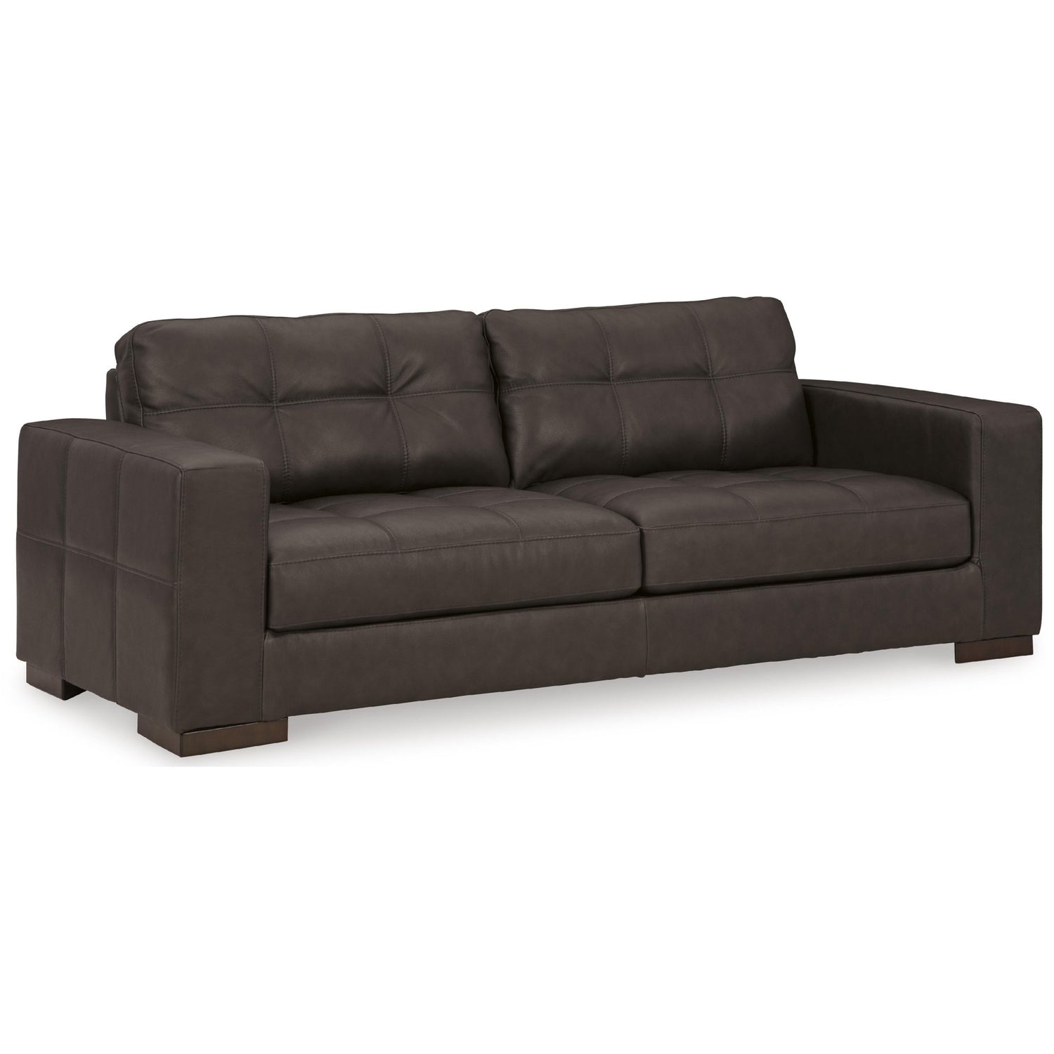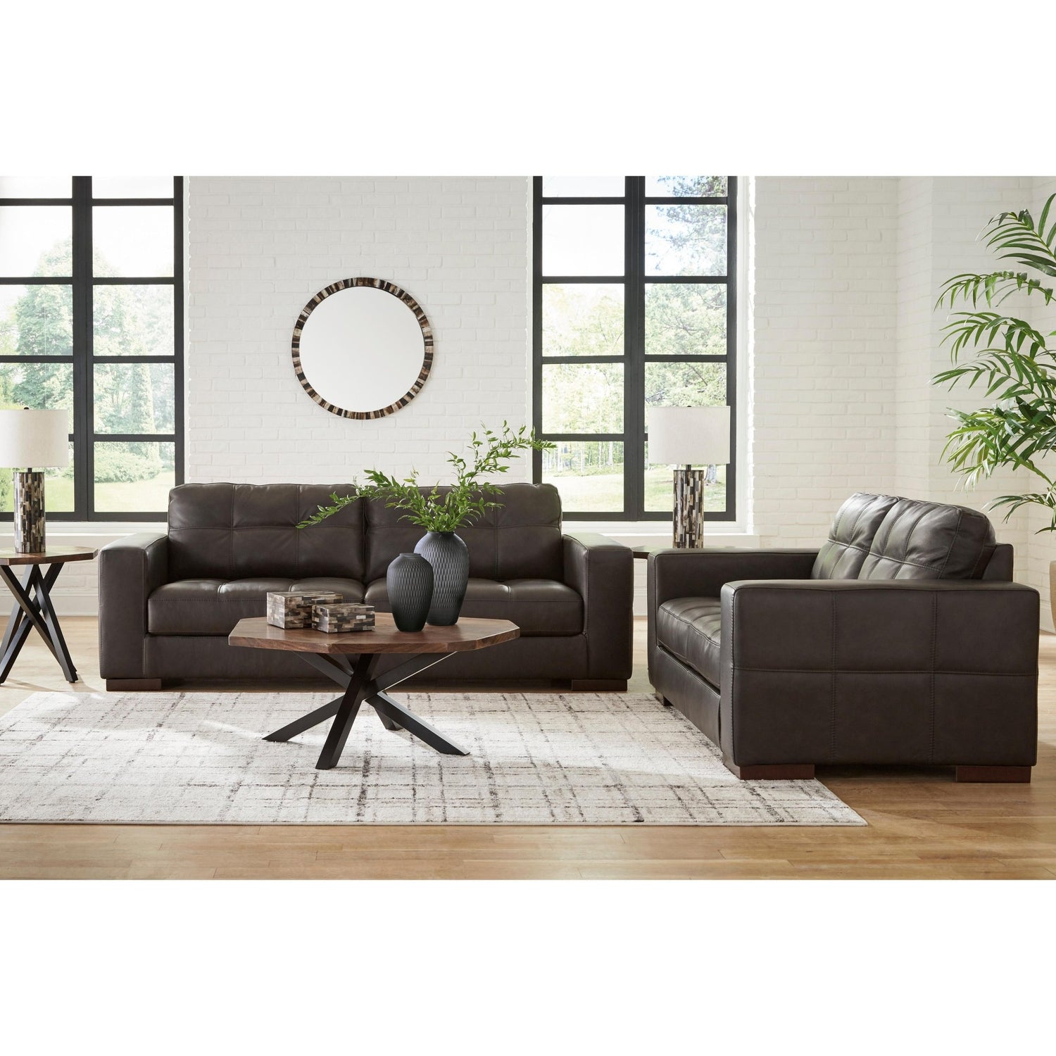 Casual and contemporary, this Luigi 2-piece living room set offers a combination of leather and faux leather upholstery that is filled with depth and dimension, incorporating an inviting sense of masculine character. With tufting details and a linear silhouette solidifying its chill vibe, all that ’s left to do is sit back and relax. This set includes a sofa and a loveseat.