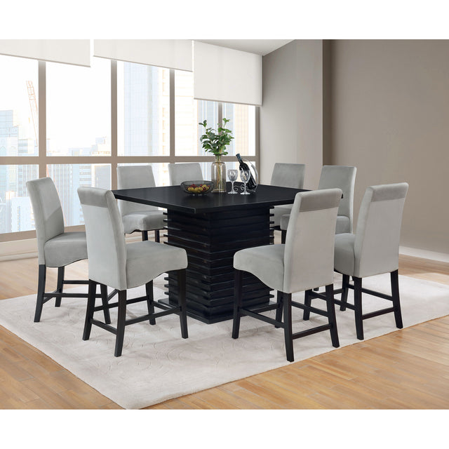 • Nine-piece counter height dining set features a modern, non-conventional style that brings bold personality to contemporary dining spaces