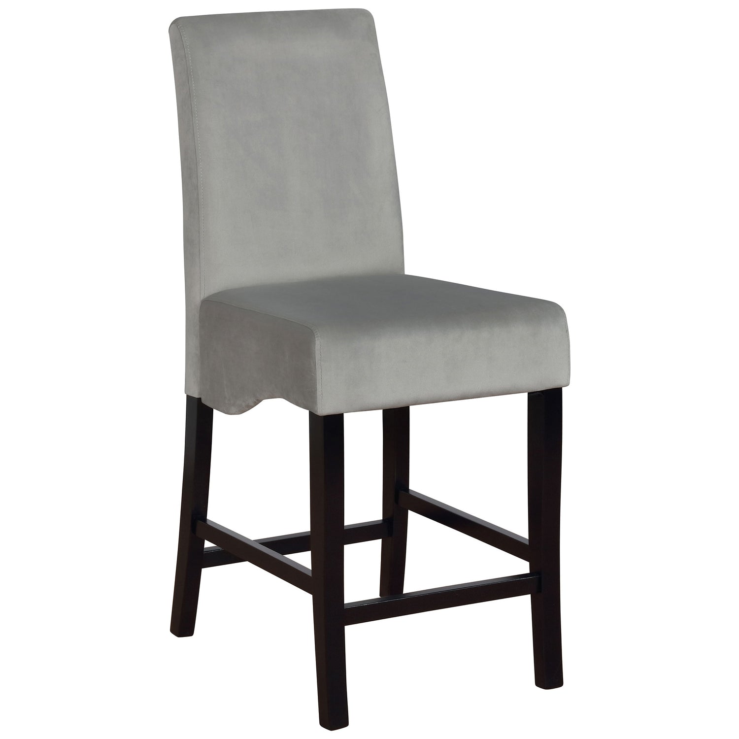 Elevate a dining or entertainment area with this minimalist style bar table and eight bar stools, designed with retro-inspired flared tapered legs in a natural walnut wood finish that lends a mid-century modern aesthetic. Each of the eight elegantly tapered bar stools is topped off with a dark grey cushion that offers a subtle contour for supreme comfort, sliding up to the elongated rectangular tabletop effortlessly.