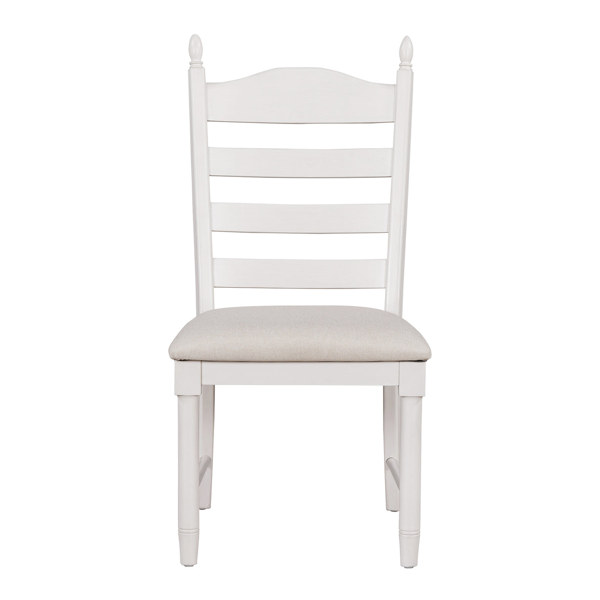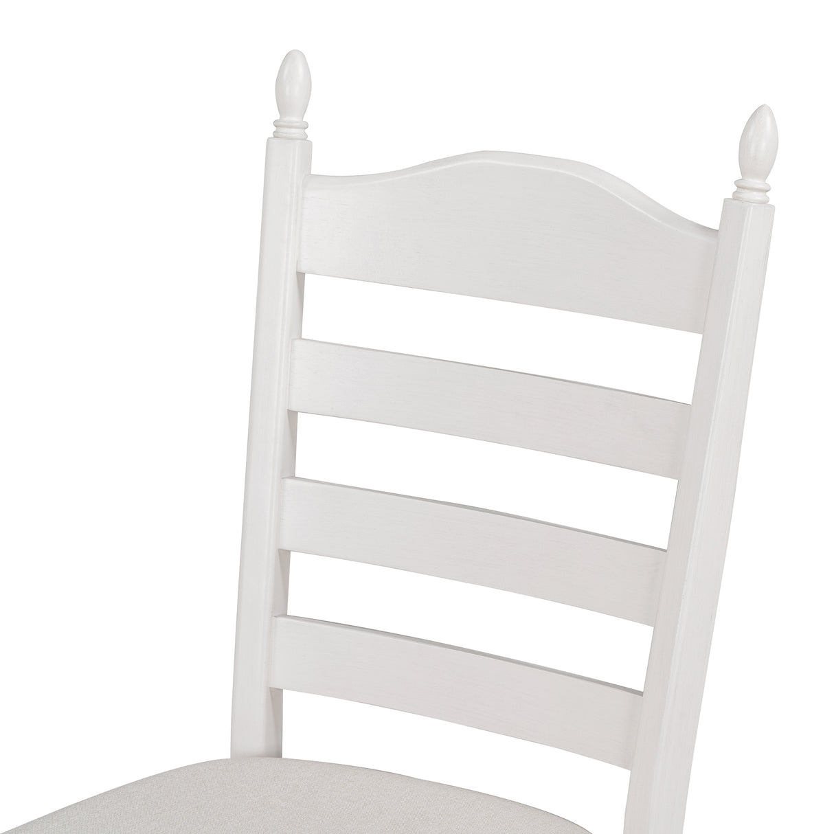 2. Adjustable Dining Table This dining table has one movable leaf to meet different needs of different lengths of use purposes. The total length of the dining table is 58’, and the length of it when the board removed away is 42’. With the movable board’s benefit, this adjustable-length tabletop design enhances many functions in daily use. It’s fit for the nuclear family and the average household. 3. Notable Details The leg of this table is in big difference from most other common tables in that it applies the design of special pedestal table base, which adds a retro and delicate flair to the dining set. The dining chair backrests designed into the ladder back side elements highlight the texture and taste, and most importantly, this design is in line with ergonomic needs, thus enhancing the sitting comfort. The notable retro elements mentioned above of this dining table set can match farmhouse decor style easily. 4. Premium Quality Carefully selected quality materials ensure stability and durability in daily use. The main structure of the dining table set, including table and chairs, is made of solid rubber wood to ensure stability in daily use. Four chairs use woven fabric as the wrapping material for seat cushion, and the 100% polyurethane foam pad as the filler, thus providing you unusually comfortable sitting experience. Moreover, the support frame of this table is made of solid rubber wood to guarantee the stability in long-term use. The weight capacity of the table and one piece of chair is separately 300 lbs and 250 lbs. 5. Assembly & Customer Service Full assembly required. This dining table set comes with detailed instructions, and it can be installed step by step following the instructions, which can help you complete the assembly as soon as possible.